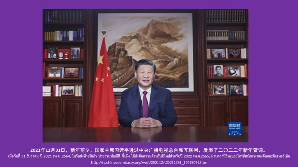 คำอวยพรปีใหม่ของประธานาธิบดีสี จิ้นผิง เมื่อค่ำ วันที่ 31 ธ.ค.64 โดยกล่าวผ่านสถานีวิทยุและโทรทัศน์กลางแห่งประเทศจีน (CMG) และเว็บไซต์ ดังมีใจความสำคัญว่า