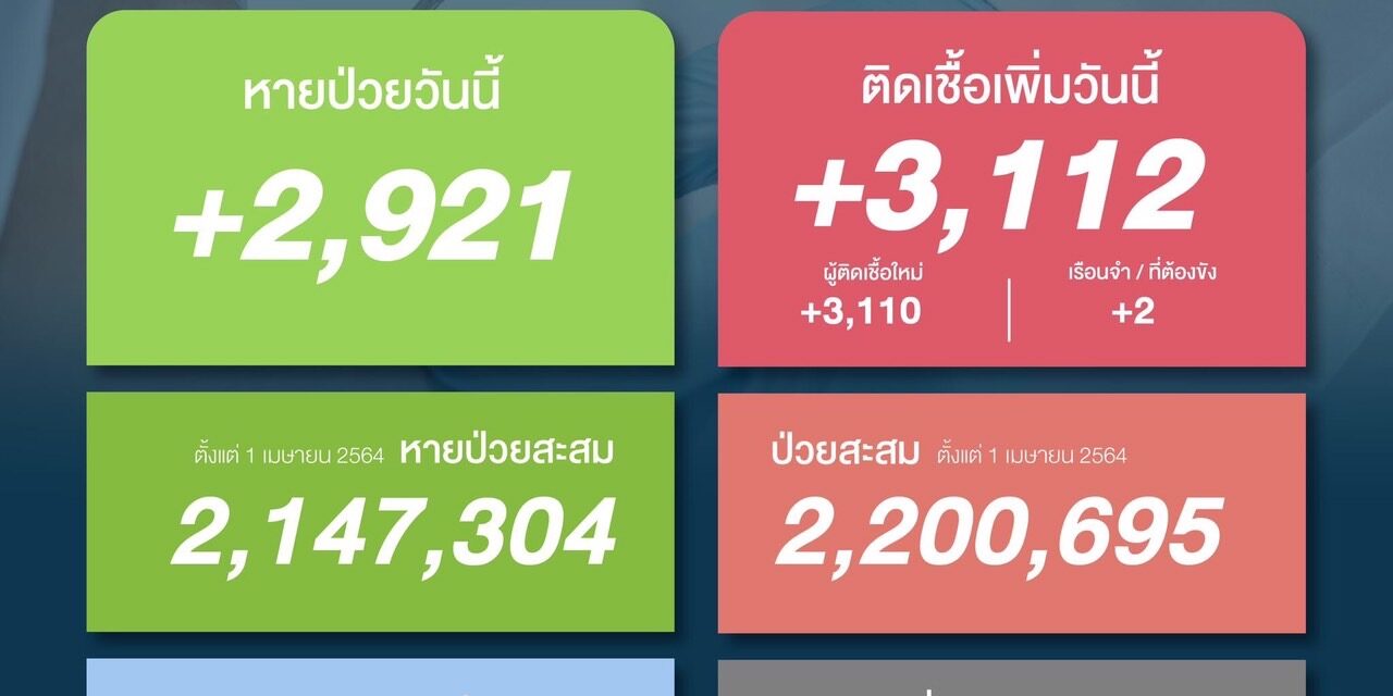 หายป่วยสะสม 2,147,304 ราย (ตั้งแต่ 1 เมษายน)