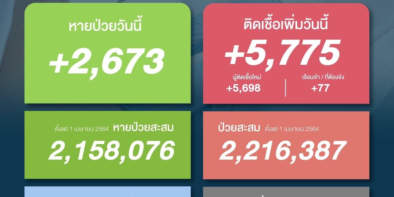 หายป่วยสะสม 2,158,076 ราย (ตั้งแต่ 1 เมษายน)