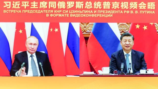 นาย สี จิ้นผิง ปธน.จีน และนาย วลาดิมีร์ ปูติน ปธน.รัสเซีย แลกเปลี่ยนความยินดี ปีใหม่ 2022