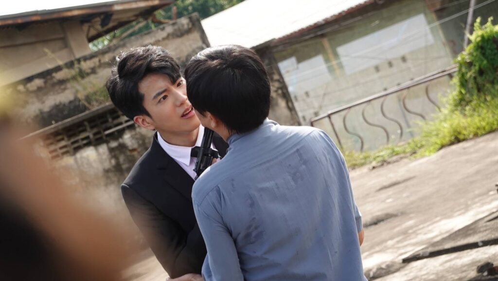 “ผมมองว่าทุกฉาก ทุกซีนมันถูกการเวิร์คชอป มันถูกการอ่านบท ถูกการเตรียมตัว ทำการบ้านบทมาสักระยะหนึ่ง การบ้านที่ผมทำสำหรับซีนนี้คือ เราเป็นตัวดำเนินเรื่อง บทต้องแน่นอยู่แล้ว แต่ที่น่าสนใจมากที่สุด ผมมองว่าไม่ใช่ตัวผมนะ น่าจะเป็นพี่โก้มากกว่า เพราะว่าในมุมมองของ วี พี่โก้คือ พ่อ ที่ไม่ได้เจอกันมา 20 ปี และเราก็ไม่ชอบขี้หน้า เรื่องที่เขาทำกับแม่ พอได้มาเจออีกครั้ง ความห่วงใย ความผูกพันใดๆ มันหมดไปตั้งแต่ตอนเป็นเด็กแล้ว ตอนนี้มันเหลือแค่ความโกรธและความไม่เข้าใจเท่านั้นเอง การมาเจอครั้งนี้มันเลยเป็นแค่แบบ เราต้องการรู้ความจริง แล้วก็ค่อยกำจัดทิ้งตามคำสั่ง ป๋า แต่สำหรับพี่โก้ คือตัวละคร วิทยา ได้กลับมาเจอลูกชายของตัวเองที่ไม่ได้เจอมายี่สิบปี เพราะฉะนั้นความเฉิดฉายของตัวละครน่าจะเป็น วิทยา มากกว่า แล้วพี่โก้ก็ส่งมาเต็ม แล้วผมก็ทำหน้าที่ของตัวเอง พี่โก้ส่งมารุนแรงแค่ไหน ผมก็จะส่งกลับไปรุนแรงแค่นั้นครับผม ผมว่าเป็นซีนที่สนุก และหวังว่าทุกคนจะชอบนะครับ”