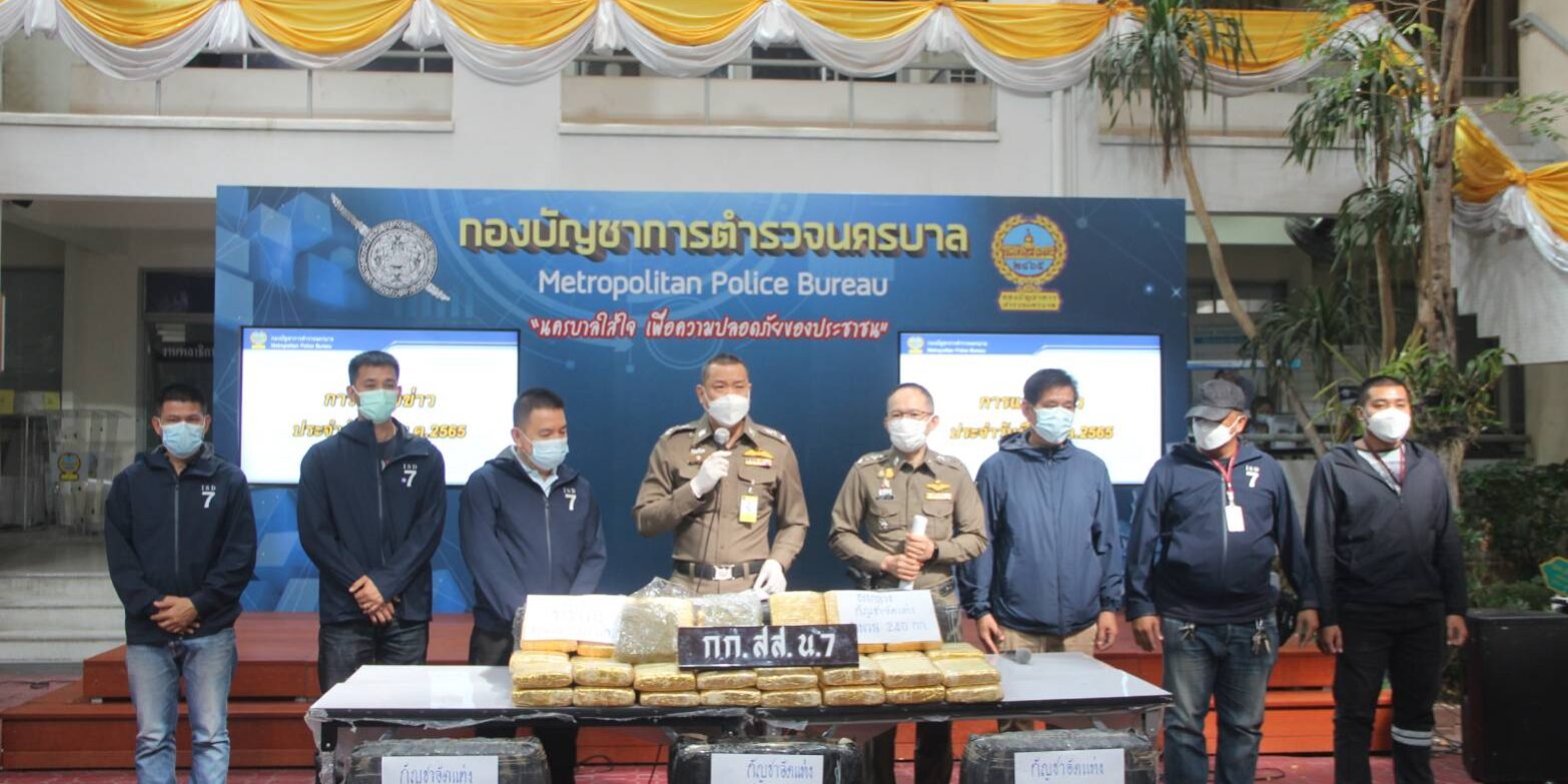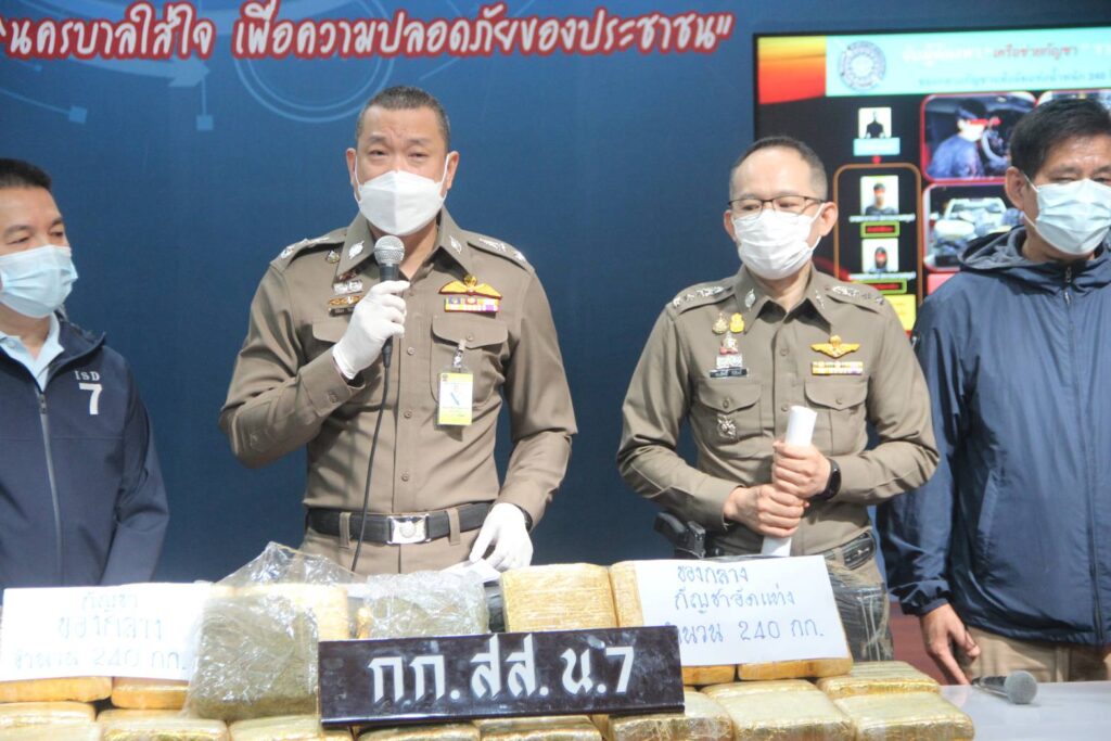 วันที่ 7 ม.ค.65 เวลา 10.30 น.ณ ลานเอนกประสงค์ บช.น.: พล.ต.ต.นิธิธร จินตกานนท์ รอง ผบช.น./โฆษก บช.น. พร้อมด้วย พ.ต.อ.คมสิทธิ์ รังไสย์ รอง ผบก.น.7 และเจ้าหน้าที่ชุด กก.สส.บก.น.7 ร่วมแถลงข่าวการจับกุมเครือข่ายค้ากัญชาอัดแท่ง จำนวน 240 กก. พร้อมของกลางอื่นๆ ในเขตพื้นที่ จ.สมุทรสาคร