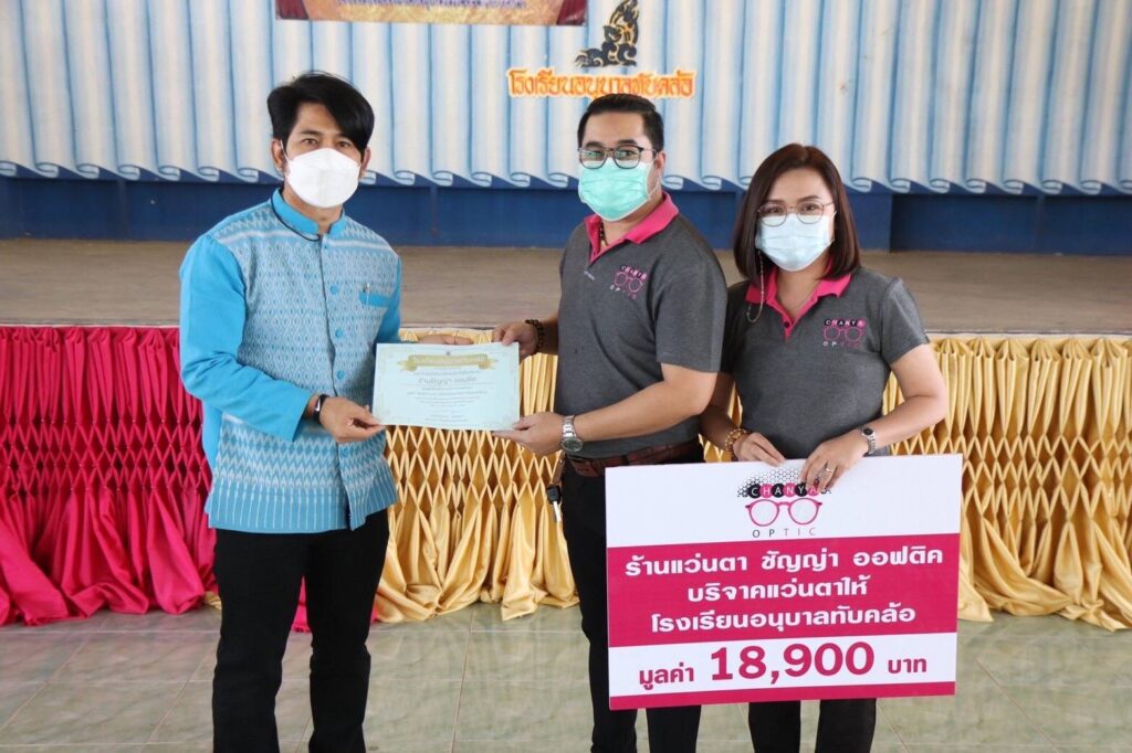 นางวราภรณ์ ม่วงเล็ก เจ้าของร้านแว่นตาชัญญา ออฟติค ได้กล่าวว่า “ ทางร้านได้ จัดทำโครงการ “ ยิ่งให้.. ยิ่งสุข ” เพื่อคืนกำไรให้กับสังคมทุกๆปี สำหรับปีนี้ได้มอบแว่นตาให้ให้กับนักเรียนโรงเรียนอนุบาลทับคล้อ ที่มีปัญหาทางสายตาและมีฐานะยากจน โดยไม่มีค่าใช้จ่าย เพื่อเป็นการพัฒนาคุณภาพชีวิตให้ดีขึ้น และเป็นของขวัญปีใหม่และของขวัญวันเด็กให้กับนักเรียนอีกด้วย ”