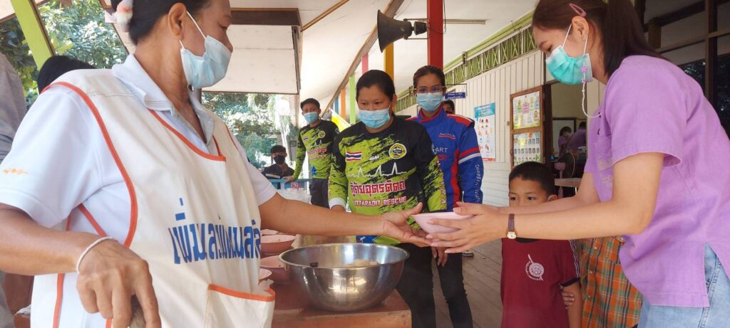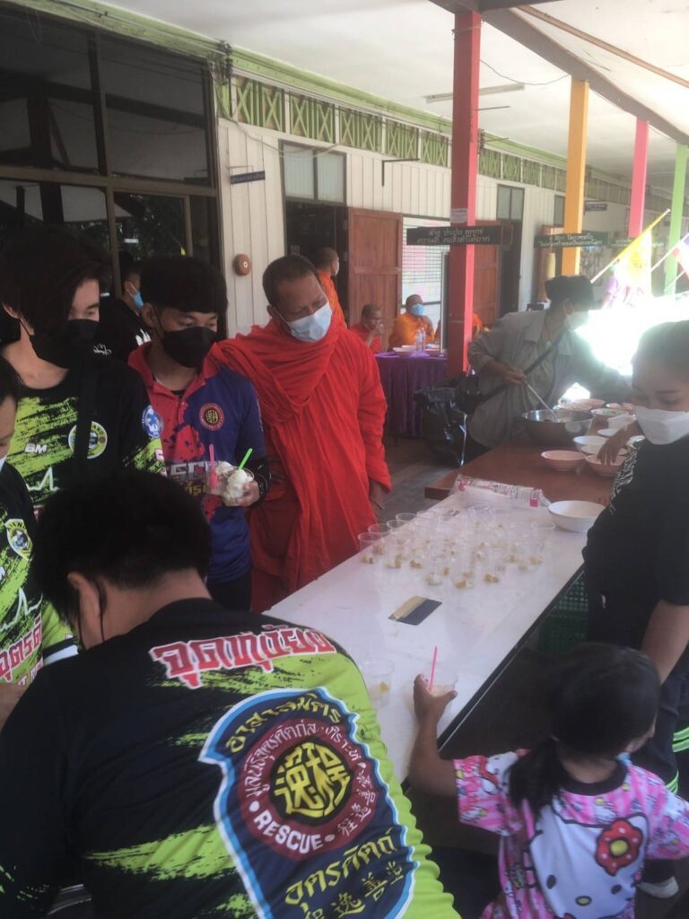 7 มกราคม 2564 พระปลัดวรัญญู ตปสีโล เจ้าอาวาสวัดฤาษีสำราญ ม.1 ตำบลทุ่งยั้งอำเภอลับแลพร้อมอาสาสมัครกู้ภัยมูลนิธิอุตรดิตถ์สงเคราะห์จดถุงยางประสานผู้อำนวยการโรงเรียนชุมชนไผ่ล้อมวิทยาคม หมู่ที่ 1 ตำบลไผ่ล้อมเลี้ยงอาหารกลางวันให้กับเด็ก ๆ เป็นก๋วยเตี๋ยวไอศครีมน้ำแข็งใสและขนม ตามมาตรการป้องกัน covid 19 โดยการให้ทานทีละห้องไม่รวมกลุ่มในช่วงเวลา 11:30 น จนถึงเวลา 12:30 น ” รอคิด รอบครอบ รับผิดชอบต่อสังคม “