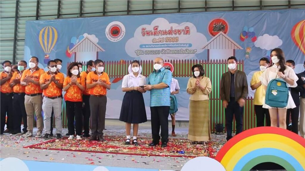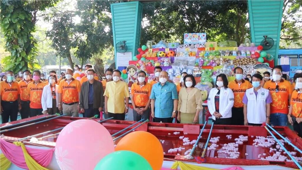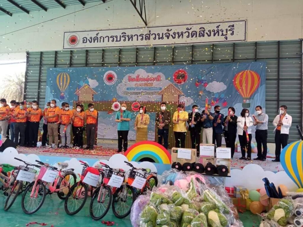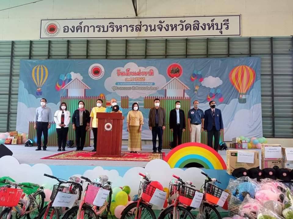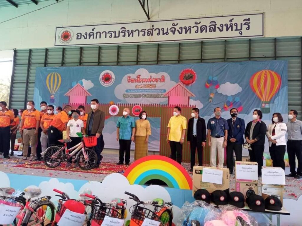 วันที่ 8 มกราคม 2565 จังหวัดสิงห์บุรี ร่วมกับ องค์การบริหารส่วนจังหวัดสิงห์บุรี จัดงานวันเด็กสิงห์บุรี ประจำปี 2565 นายชัยชาญ สิทธิวิรัชธรรม ผู้ว่าราชการจังหวัดสิงห์บุรี เป็นประธานเปิดงานวันเด็ก วิถีใหม่ เพลิน Online & Onsite อ่านสาส์นวันเด็กของฯพณฯนายกรัฐมนตรี และคำขวัญวันเด็ก”รู้คิด รอบคอบ รับผิดชอบต่อสังคม”แล้วมอบโลห์รางวัลและของที่ระลึกให้เด็กและเยาวชนดีเด่น และจับรางวัลพิเศษมอบโชคให้กับเด็กและเยาวชนที่มาร่วมกิจกรรม โดยมีนายโชติวุฒิ ธนาคมานุสรณ์ สมาชิกสภาผู้แทนราษฎร สิงห์บุรี นางจิตติวรรณ สิทธิวิรัชธรรม นายกเหล่ากาชาดจังหวัดสิงห์บุรี นายสัมฤทธิ์ กองเงิน รองผู้ว่าราชการจังหวัดสิงห์บุรี นายศุภวัฒน์ เทียนถาวร นายกองค์การบริหารส่วนจังหวัดสิงห์บุรี สมาชิกสภา อบจ.สิงห์บุรี นายณรงศักดิ์ วิงวอน นายกเทศมนตรีเมืองสิงห์บุรี และหัวหน้าส่วนราชการ