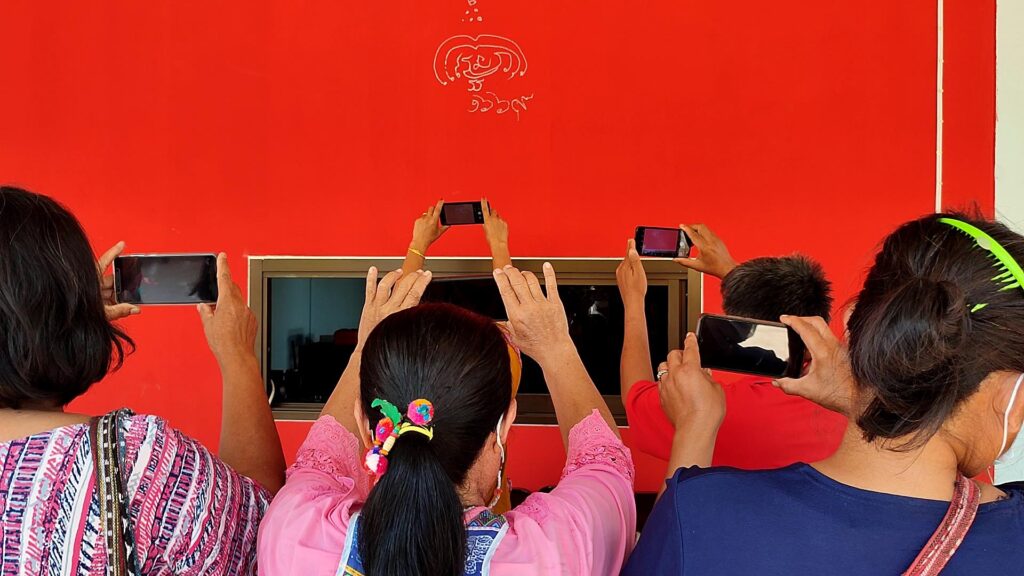 โดยมี พระครูปิยพัชรานุสิฐ เจ้าคณะตำบลซับเปิบ เป็นประธานฝ่ายสงฆ์และทำพิธีเจิมป้าย หลังพระอาจารย์ทำพิธีเจิมเสร็จ บรรดาคอหวยและชาวบ้าน ต่างไม่พลาด ที่จะส่องตัวเลข 1669 ที่เขียนเป็นตัวเลขไทย ที่พระอาจารย์เขียนเจิมเป็นตัวเลขสำหรับแจ้งเหตุฉุกเฉิน ต่างพากันใช้โทรศัพท์มือถือถ่ายรูป ส่งต่อลงโซเชียลกันอย่างคึกคัก บางคนก็เดินหาแผงล๊อตเตอรี่ เพื่อหาซื้อรางวัล และถือโอกาส ในวันที่ 9 หรือ 9แรกของปี 2565 ทำการเสี่ยงโชคตามๆกัน