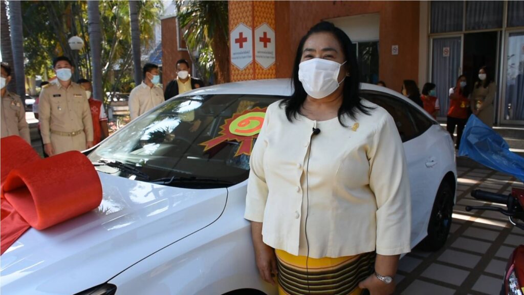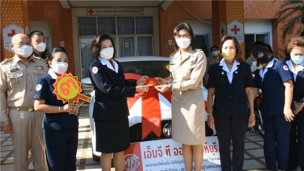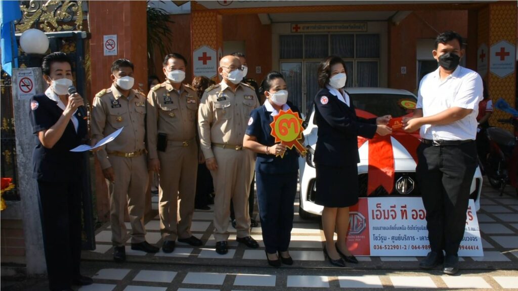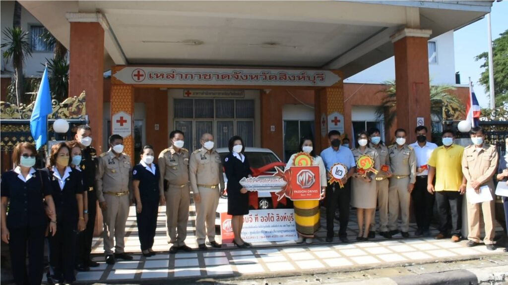 ทั้งนี้ ผู้ว่าราชการจังหวัดสิงห์บุรี ได้กล่าวแสดงความยินดีและส่งมอบรถ MG ให้ผู้โชคดีด้วยตนเอง ในโอกาสนี้ ผู้โชคดีรางวัลที่ 1 ก็ได้บริจาคเงินให้เหล่ากาชาดจังหวัดสิงห์บุรี จำนวน 10,000 บาท ซึ่งเหล่ากาชาดจังหวัดสิงห์บุรี จะนำเงินไปช่วยเหลือประชาชนที่ประสบภัย และผู้ด้อยโอกาส ในพื้นที่จังหวัดสิงห์บุรีต่อไป
