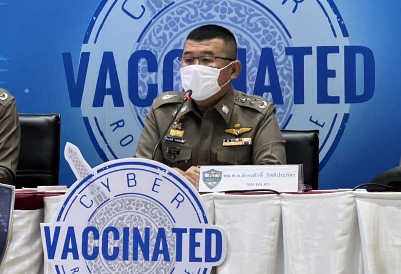 เมื่อวันที่ 8 ม.ค.65 เวลา 14.00 น. ที่สำนักงานตำรวจแห่งชาติ พล.ต.อ.ดำรงศักดิ์ กิตติประภัสร์ รอง ผบ.ตร. ในฐานะผู้อำนวยการศูนย์ปราบปรามอาชญากรรมทางเทคโนโลยีสารสนเทศ สำนักงานตำรวจแห่งชาติ (ศปอส.ตร.) หรือ PCT,พล.ต.ท.ปรีชา เจริญสหายานนท์ ผู้ช่วย ผบ.ตร./รอง ผอ.ฯ,พล.ต.ท.สุคุณ พรหมายน ผบช.ทท. และ พล.ต.ต.สันติ ชัยนิรามัย รอง ผบช.ก. ร่วมกันแถลงผลการจับกุมการพนันออนไลน์เครือข่าย “ไพลิน” การพนันกำถั่วออนไลน์ มูลค่าความเสียหายกว่า 300 ล้านบาท