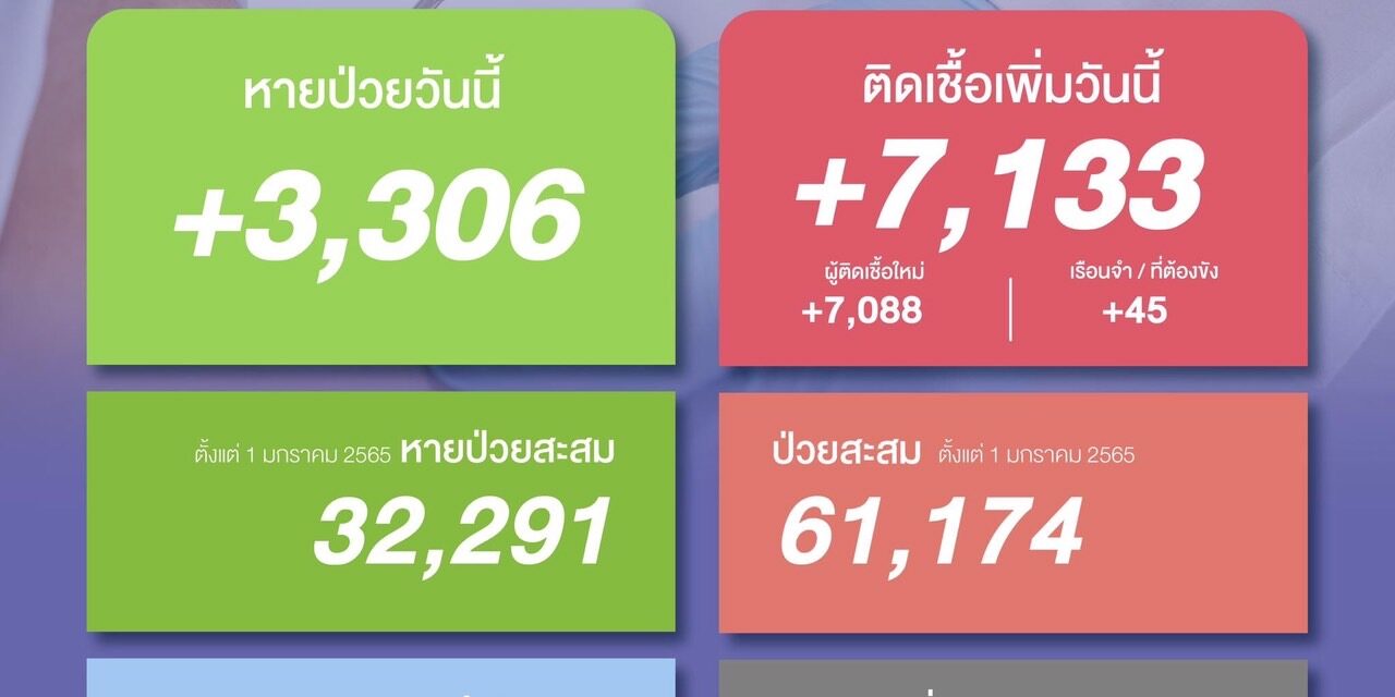 หายป่วยสะสม 32,291 ราย (ตั้งแต่ 1 มกราคม 2565)