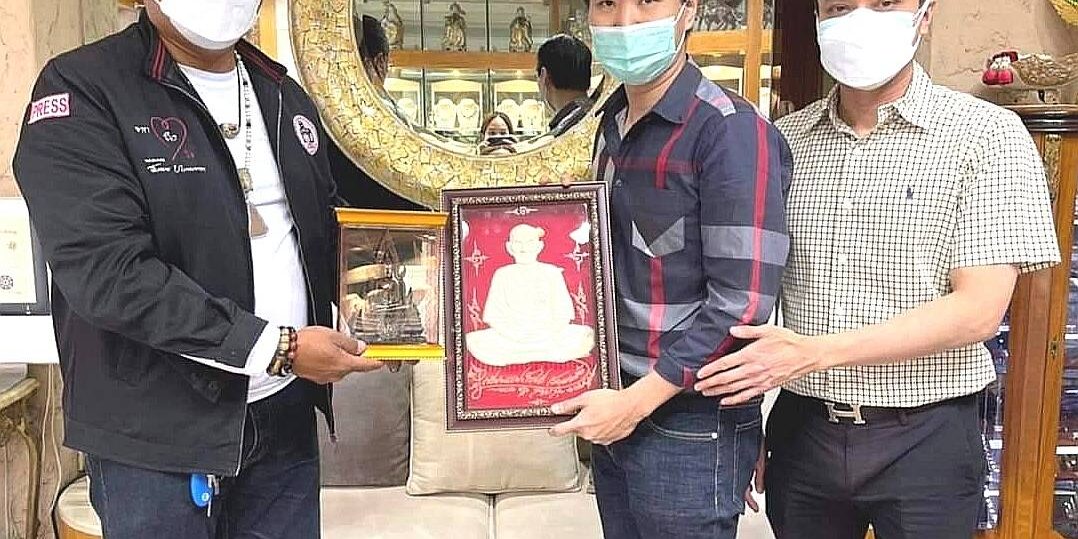 เทพศรียันตรา/บรรณาธิการข่าวนครบาล หนังสือพิมพ์เรื่องจริงผ่านเลนส์ นำมงคลบูชาองค์พระพุทธชินราช และ กรอบรูปอาแป๊ะโรงสี เข้าอวยพรปีใหม่ ดร.พีรวัฒน์ สุรเศรษฐ ประธาน กต.ตร.กทม.(ภาคประชาชน)-สน.ชนะสงคราม และ ดร.ธัชวิน สุรเศรษฐ ประธานกต.ตร.บก.น.1-กองบังคับการปฏิบัติการพิเศษ (191)