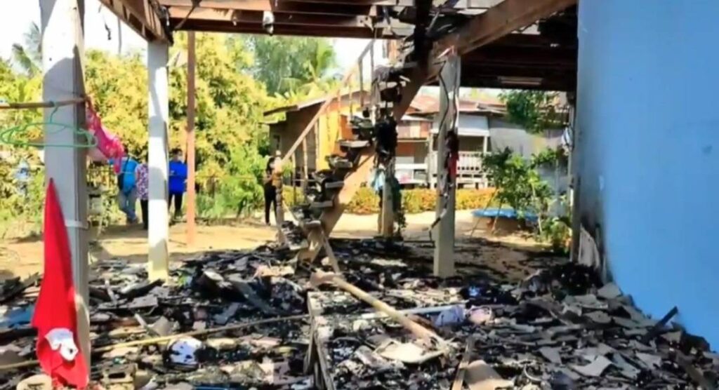 ต่อมาผู้สื่อข่าว ได้ลงพื้นที่ตรวจสอบ พบว่าบ้านถูกเพลิงเผาจนไหม้ทั้งหลัง ส่วนสาเหตุของเพลิงไหม้เกิดจาก หลานชายที่อาศัยอยู่ในบ้าน อายุประมาณ 12 ปี ได้อ่านหนังสือ เพื่อเตรียมสอบ โดยจำเป็นต้องจุดเทียนเพื่อที่จะให้มีแสงสว่างในการอ่านหนังสือสอบ เนื่องจากไฟฟ้าถูกตัด แต่แล้วเมื่ออ่านหนังสือเสร็จ จึงได้ดับเทียนแล้วออกมานอนที่หน้าบ้าน แต่กลับกลายเป็นว่า ได้เกิดเพลิงไหม้ออกมาจากห้องที่ได้อ่านหนังสือ จึงได้คาดว่า เกิดจากที่ดับเทียน แล้วดับไม่สนิท จึงทำให้ไฟลุกไหม้