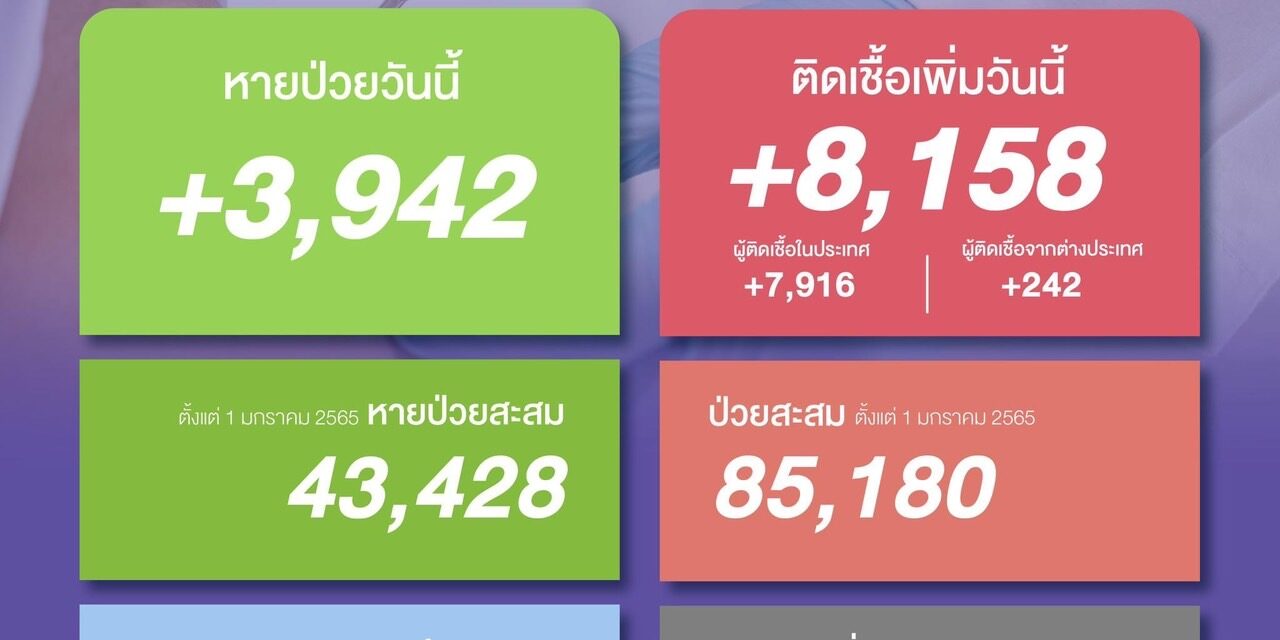 หายป่วยสะสม 43,428 ราย (ตั้งแต่ 1 มกราคม 2565)