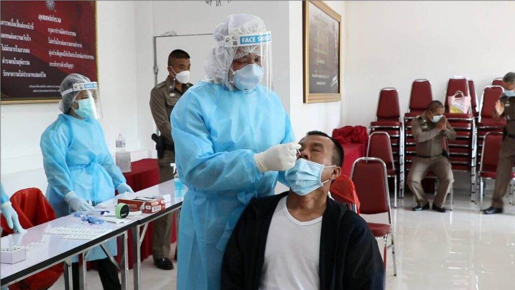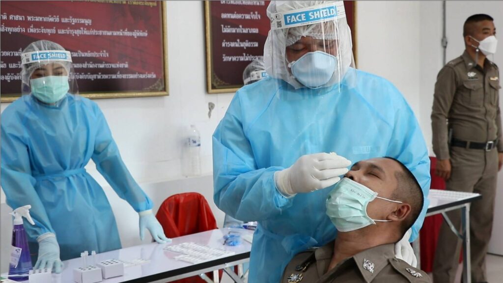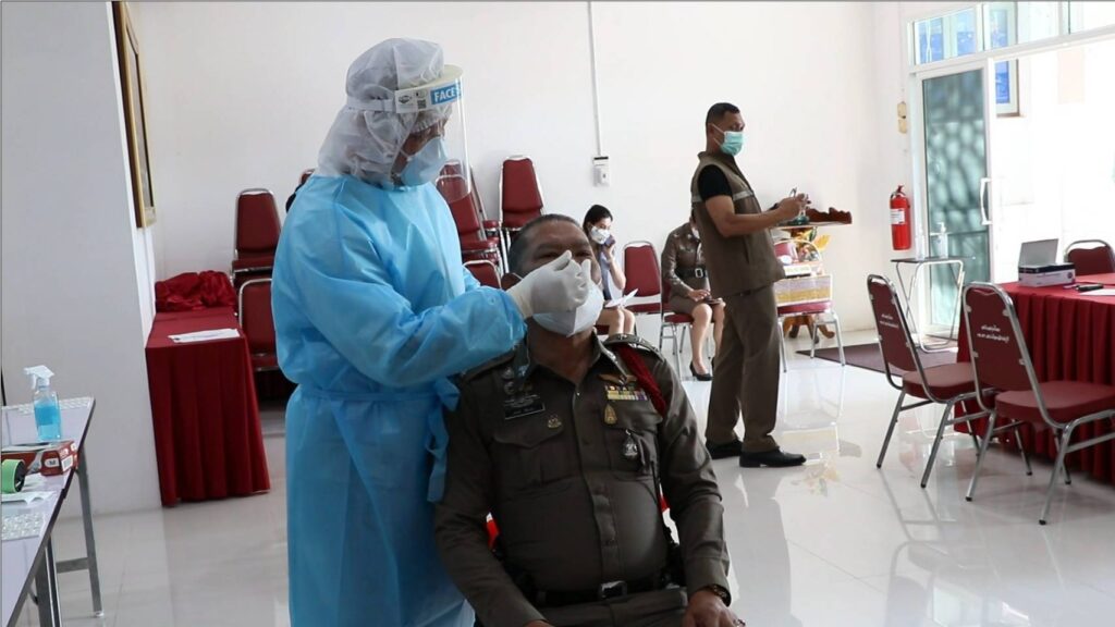 พล.ต.ต.วีรวิชญ์ บัวประเสริฐยิ่ง ผู้บังคับการตำรวจภูธรจังหวัดสิงห์บุรี ได้รับมอบนโยบายจากสำนักงานตำรวจแห่งชาติ ให้ข้าราชการตำรวจในสังกัดฯทุกนายเข้ารับการตรวจหาเชื้อไวรัสโควิด-19 ATK หลังจากช่วงวันหยุดยาวเทศกาลปีใหม่เป็นการเร่งด่วน โดยมี เจ้าหน้าที่สาธารณสุขอำเภอเมืองสิงห์บุรีมาทำการตรวจหาเชื้อโควิด-19 ให้กับข้าราชการตำรวจภูธรอำเภอเมืองสิงห์บุรีทุกคน ณ ห้องประชุมต้นโพธิ์ หลังสถานีตำรวจภูธรอำเภอเมืองสิงห์บุรี เนื่องจากสถานการณ์โรคติดเชื้อไวรัสโคโรนา 2019 (COVID-19) เริ่มกลับมาแพร่ระบาด โดยเฉพาะสายพันธุ์ใหม่ โอมิครอน ทำให้มีผู้ติดเชื้อเพิ่มขึ้นและเนื่องจากช่วงเทศกาลปีใหม่ 2565 ที่มีวันหยุดต่อเนื่องหลายวัน ซึ่งพี่น้องประชาชน อาจมีการไปท่องเที่ยว หรือกลับภูมิลำเนา ซึ่งข้าราชการตำรวจที่ปฏิบัติหน้าที่อำนวยความสะดวกเรื่องการจราจรและ ป้องกันอาชญากรรม ช่วงเทศกาลปีใหม่ 2565 ที่ผ่านมาเป็นกลุ่มเสี่ยงเพื่อความปลอดภัยของพี่น้องประชาชนที่มาใช้บริการสถานีตำรวจภูธรจังหวัดสิงห์บุรีห่างไกลโควิด-19 ยังไม่พบผู้ติดเชื้อโควิด