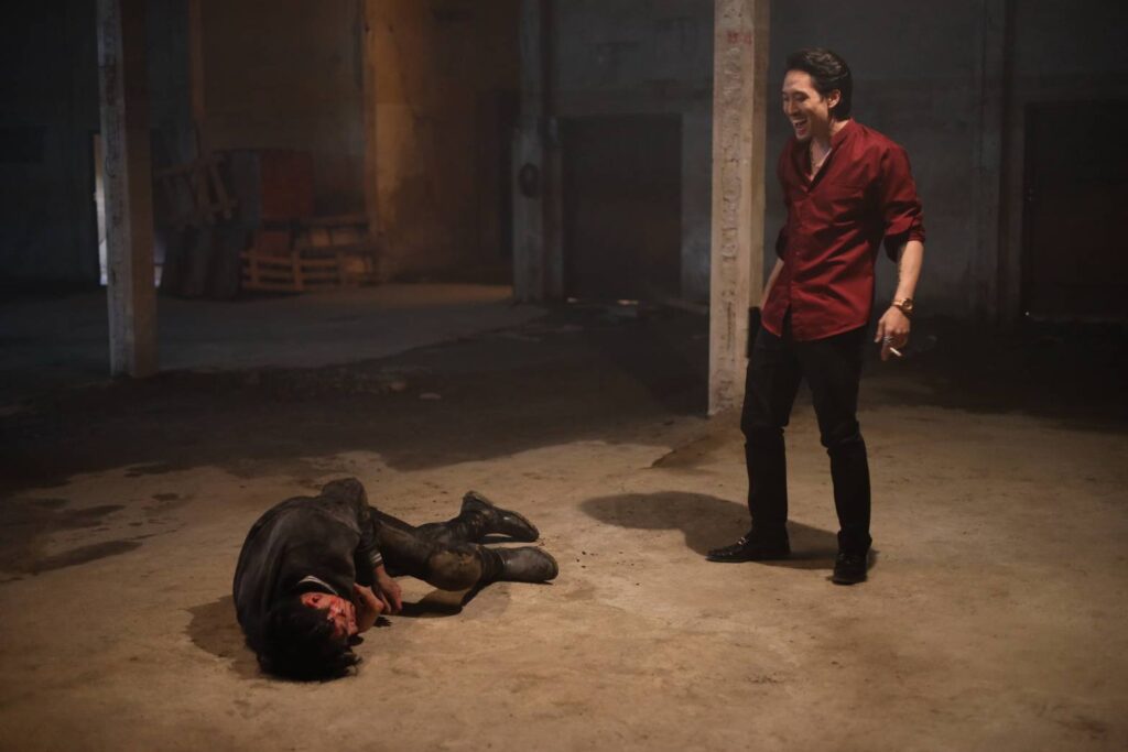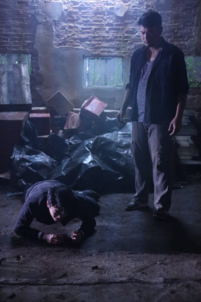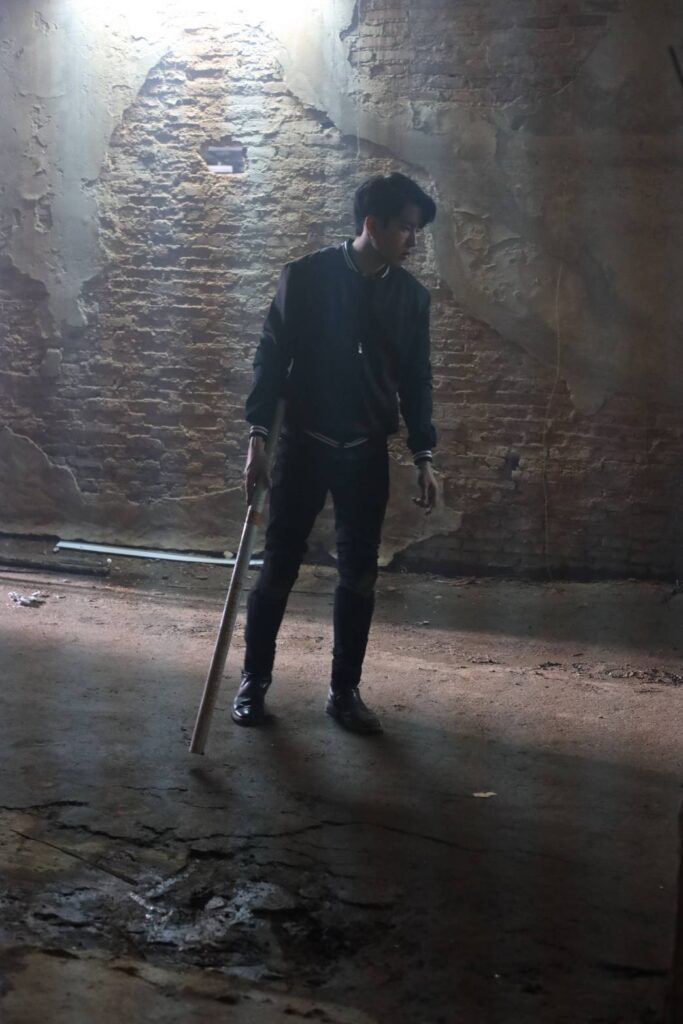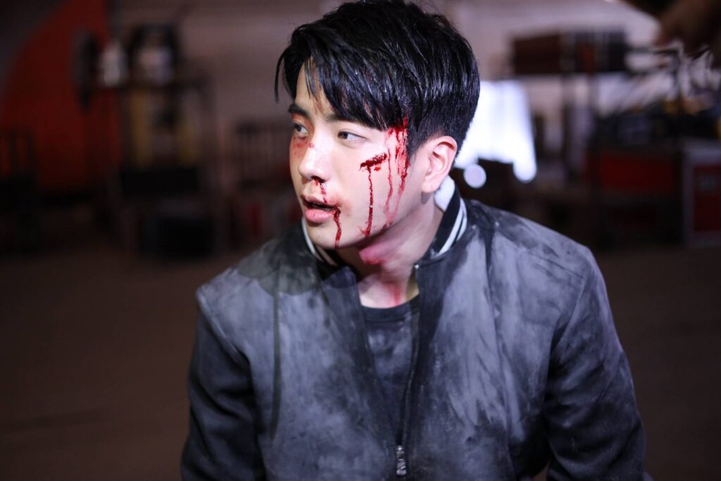 จากนั้นผู้กำกับฯ ก็เริ่มถ่ายทำฉากที่ วี เข้ามาในห้อง โดยมี ภพ รอรับอยู่ พร้อมต้อนรับด้วยการเตะเน้นๆ หลายครั้ง และสุดท้ายในขณะที่กำลังจะยิง วี เหตุการณ์ไม่คาดฝันก็เกิดขึ้น!!!!