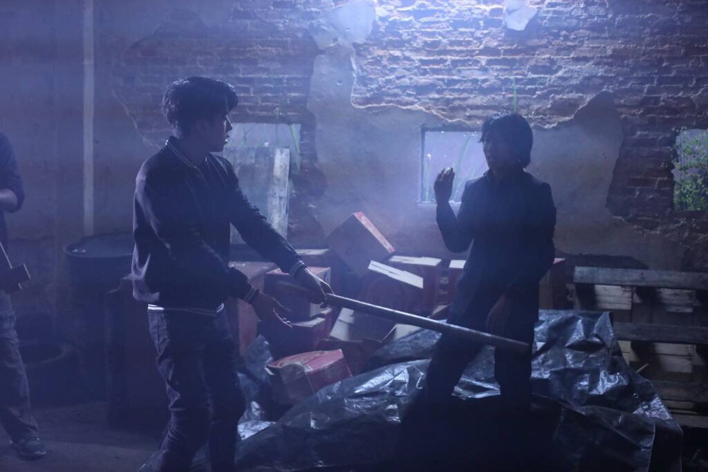 ฉากนี้ทีมงานใช้ โกดังสะพานนวลฉวี เป็นสถานที่ถ่ายทำ โดยแบ่งถ่ายเป็นฉากที่ วี ต้องผ่านด่านบรรดาลูกน้องของ ภพ ที่ต้องใช้กำลังเข้าสู้ ฉากนี้ เพชร วรายุ ให้ทีมแอ็คชั่นมาช่วยเสริมความมันส์ให้คนดูได้สะใจ ส่วนนักแสดงนั้นต้องซ้อมคิวบู๊กันหลายรอบ เพื่อประกันความผิดพลาด