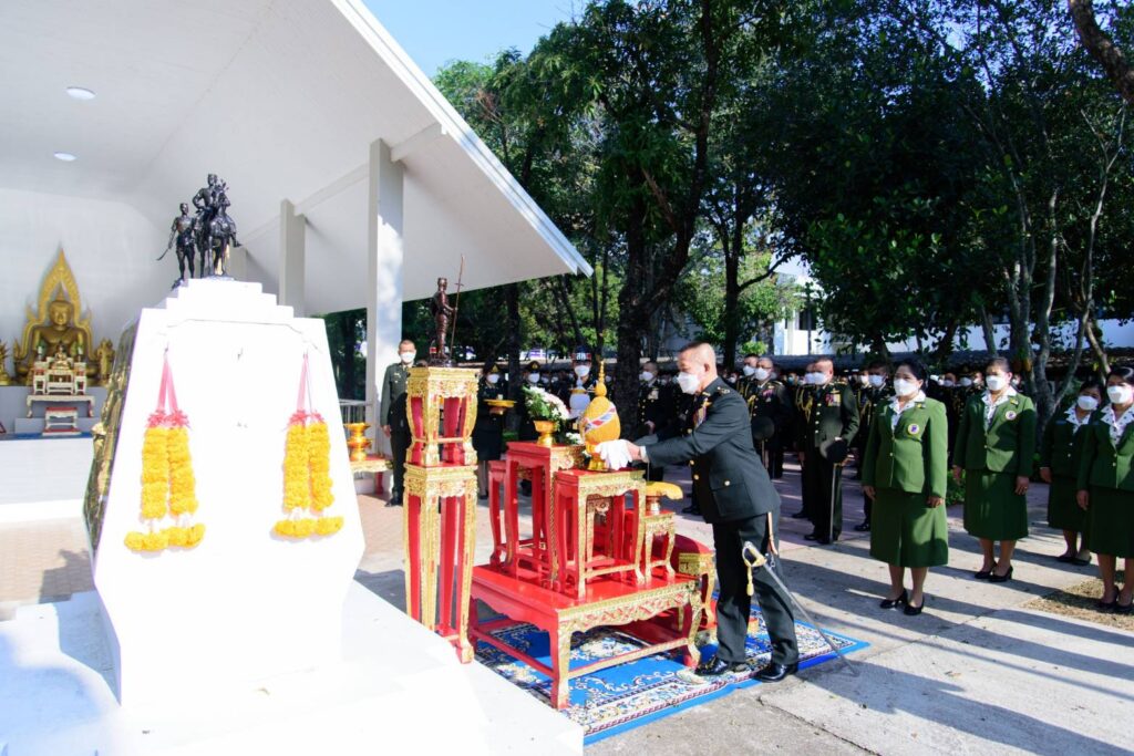 ณ พุทธสถานกองบัญชาการมณฑลทหารบกที่ 36 พลตรีสามารถ มโนรถมงคล ผู้บัญชาการมณฑลทหารบกที่ 36 พร้อมด้วย คุณกชพร มโนรถมงคล ประธานสมาคมแม่บ้านทหารบก สาขา มณฑลทหารบกที่ 36 นำกำลังพลพร้อมครอบครัว ร่วมกิจกรรมวางพานพุ่มถวายราชสักการะและกล่าวน้อมรำลึกในพระมหากรุณาธิคุณ เนื่องใน วันยุทธหัตถี สมเด็จพระนเรศวรมหาราช 18 มกราคม 2565”