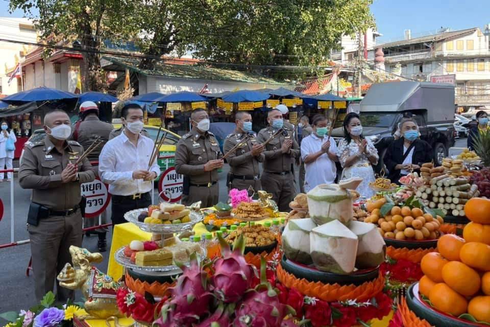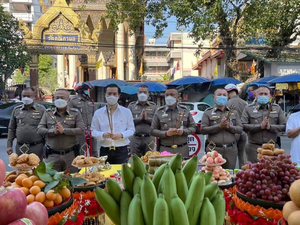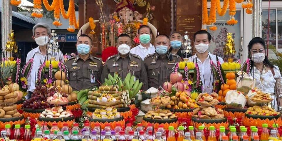 วันที่ 18 ม.ค.65 เวลา 10.00 น. : พล.ต.ต.ดร.เสนิต สำราญสำรวจกิจ รองผบช.น. พร้อมด้วย พล.ต.ต.มนต์ชัย ศรีประเสริฐ ผบก.กองตรวจราชการ 10,พล.ต.ต.สรเสริญ ใช้สถิตย์ ผบก.น.6,พ.ต.อ.ทินกร สมวันดี รองผบก.น.5,พ.ต.อ.มนัส รุ่งนาค ผกก.สน. พลับพลาไชย 1 พร้อมด้วย ดร.พีรวัฒน์ สุรเศรษฐ ประธานกต.ตร.กทม.(ภาคประชาชน)-สน.ชนะสงคราม,คุณ กิตติพงษ์ เตรัตนชัย ประธานที่ปรึกษา กต.ตร.บก.น.6,อ.เปี่ยมเดช ปิ่นโฑละ ประธาน อนุ กต.ตร.บก.น.6-สน.พลับพลาไชย1,คุณอานนท์ สุขสัตยานนท์ ประธานกต.ตร.สน. พลับพลาไชย 1 และ คุณ ดุจษะนันท์ จักเดชไชย กต.ตร.สน.พลับพลาไชย 1 ร่วมพิธีบวงสรวงองค์พระพิฆเนศ ไอศวรญะ คณปติ ครบรอบปีที่ 10 ณ บริเวณด้านหน้า สน.พลับพลาไชย 1