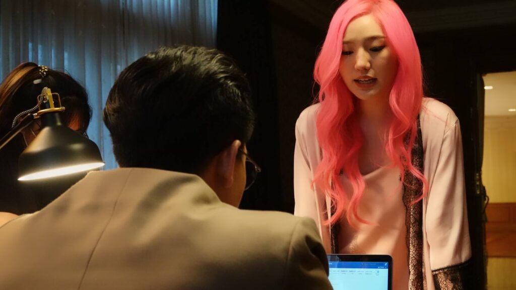ฉากแก้ผ้าในห้องน้ำ ฉากเปลือยทั้งหลัง เห็นแบบไม่เซ็นเซอร์เลย แน่นอนว่ามีพี่สแตนอินช่วยเล่นค่ะ ขอบคุณพี่สแตนอินและทางกองด้วยนะคะที่ช่วยซัพพอร์ตหนู แล้วเรื่องก็ยังไม่จบแค่นี้นะคะ รับรองว่าคนดูจะลุ้นไปถึงตอนจบเลยค่ะ”