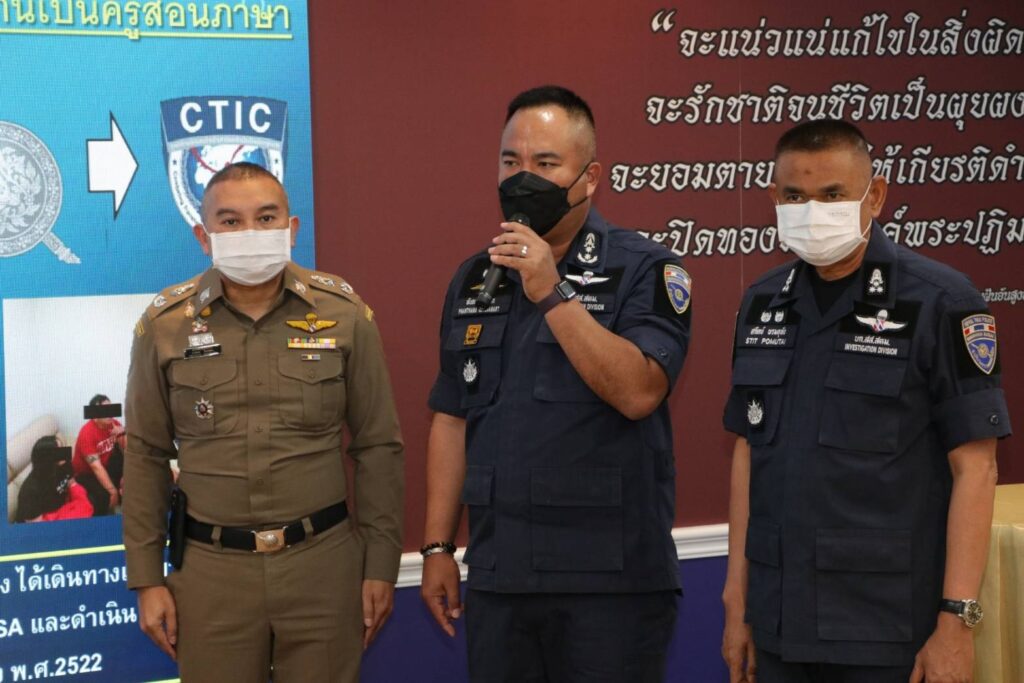 ศูนย์ปราบปรามคนร้ายข้ามชาติและเข้าเมืองโดยผิดกฎหมาย สำนักงานตำรวจแห่งชาติ (ศปชก.ตร.) โดย พล.ต.ต.อาชยน ไกรทอง รอง ผบช.สตม./หัวหน้าชุดปฏิบัติการที่ 2 ศปชก.ตร.,พล.ต.ต.พันธนะ นุชนารถ ผบก.สส.สตม.,พ.ต.อ.สถิตย์ พรมอุทัย รอง ผบก.สส.สตม.,พ.ต.อ.อาภากร โกมลสุทธิ รอง ผบก.สส.สตม.และ ว่าที่ พ.ต.อ.พิสิษฐ์ ศรีอ่อน ผกก.2 บก.สส.สตม. ร่วมแถลงข่าว โดยมีรายละเอียด ดังนี้