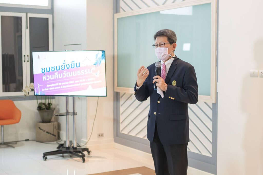 วันที่ 20 มกราคม 2565 กระทรวงวัฒนธรรม ร่วมกับ คณะวิศวกรรมศาสตร์ จุฬาลงกรณ์มหาวิทยาลัย และ สถานีวิทยุแห่งจุฬาลงกรณ์มหาวิทยาลัย จัดงานแถลงข่าวโครงการประกวดนโยบายทางเลือกและแนวคิดริเริ่มสนการพัฒนาชุมชนยั่งยืน ภายใต้หัวข้อ “ชุมชนยั่งยืนหวนคืนวัฒนธรรม (Sustainable and Cultural Community)” โดยมีนายอิทธิพล คุณปลื้ม รัฐมนตรีว่าการกระทรวงวัฒนธรรม และ ศาสตราจารย์ดร.สุพจน์ เตชวรสินสกุล คณบดีคณะวิศวกรรมศาสตร์ จุฬาลงกรณ์มหาวิทยาลัย เป็นประธานเปิดงานแถลงข่าวโครงการฯ ณ ห้อง i Think อาคาร 3 คณะวิศวกรรมศาสตร์ จุฬาลงกรณ์มหาวิทยาลัย ในงานแถลงข่าว นายอิทธิพล คุณปลื้ม รัฐมนตรีว่าการกระทรวงวัฒนธรรม ได้กล่าวปาฐกถาพิเศษในหัวข้อ “พัฒนาคุณค่าวัฒนธรรม สร้างสรรค์ความยั่งยืน” ว่าด้วยความสําคัญของมูลค่าวัฒนธรรมท้องถิ่นและการเพิ่มมูลค่าของวัฒนธรรมดังกล่าว ทั้งวัฒนธรรมที่จับต้องได้ และจับต้องไม่ได้โดยยังคงรักษาอัตลักษณ์เดิมไว้และต่อยอดต้นทุนทางวัฒนธรรมเดิมให้เกิดมูลค่าทางเศรษฐกิจ ซึ่งสอดคล้องกับการดําเนินงานของกระทรวงวัฒนธรรมในการสนับสนุนให้มีการพัฒนาระบบนิเวศ เพื่อรองรับการขับเคลื่อนเศรษฐกิจยุคใหม่ ภายใต้การพัฒนาและสร้างความเข้มแข็งจากฐานราก โดยนายอิทธิพล คุณปลื้ม ได้กล่าวในตอนท้ายว่า
