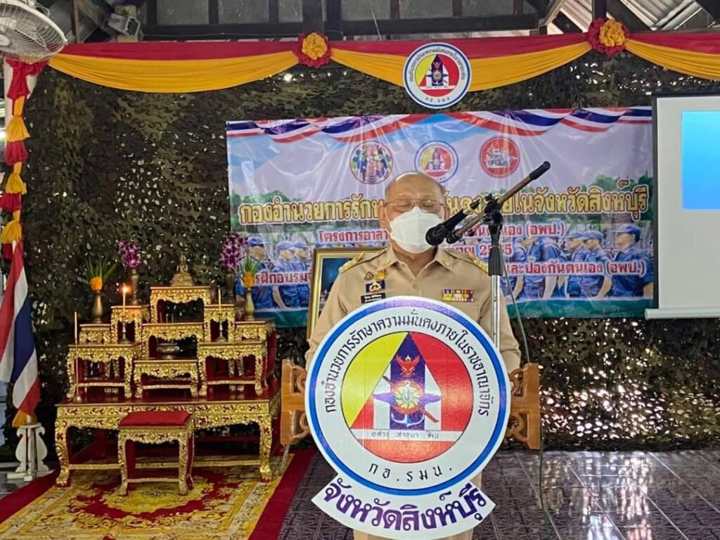 อาสาพัฒนาและป้องกันตนเอง (อพป.) ประจำปีงบประมาณ 2565 และมอบใบเกียรติบัตรแก่ผู้เข้ารับการฝึกอบรมฯ ร่วมด้วยพ.อ.ชายธนัญชา วาจรัต รอง ผอ.รมน.จังหวัดสิงห์บุรี หัวหน้าส่วนราชการที่เกี่ยวข้องและ