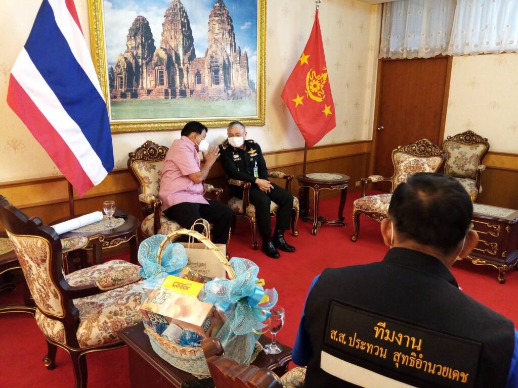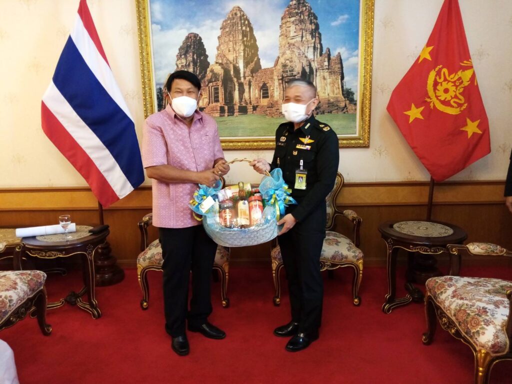เข้าอำนวยอวยพร มอบหน้ากากอานามัย เพื่อแจกให้กำลังพล และมอบกระเช้าของขวัญปีใหม่ 2565 ให้กับ ท่านพลตรี ธนสิน สุขโข ผู้บัญชาการมณฑลทหารบกที่ 13 พร้อมคณะ ฯลฯ