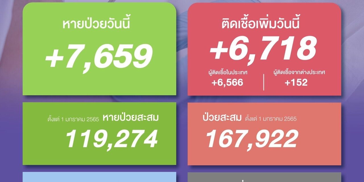 ผู้ป่วยสะสม 167,922 ราย (ตั้งแต่ 1 มกราคม 2565)
