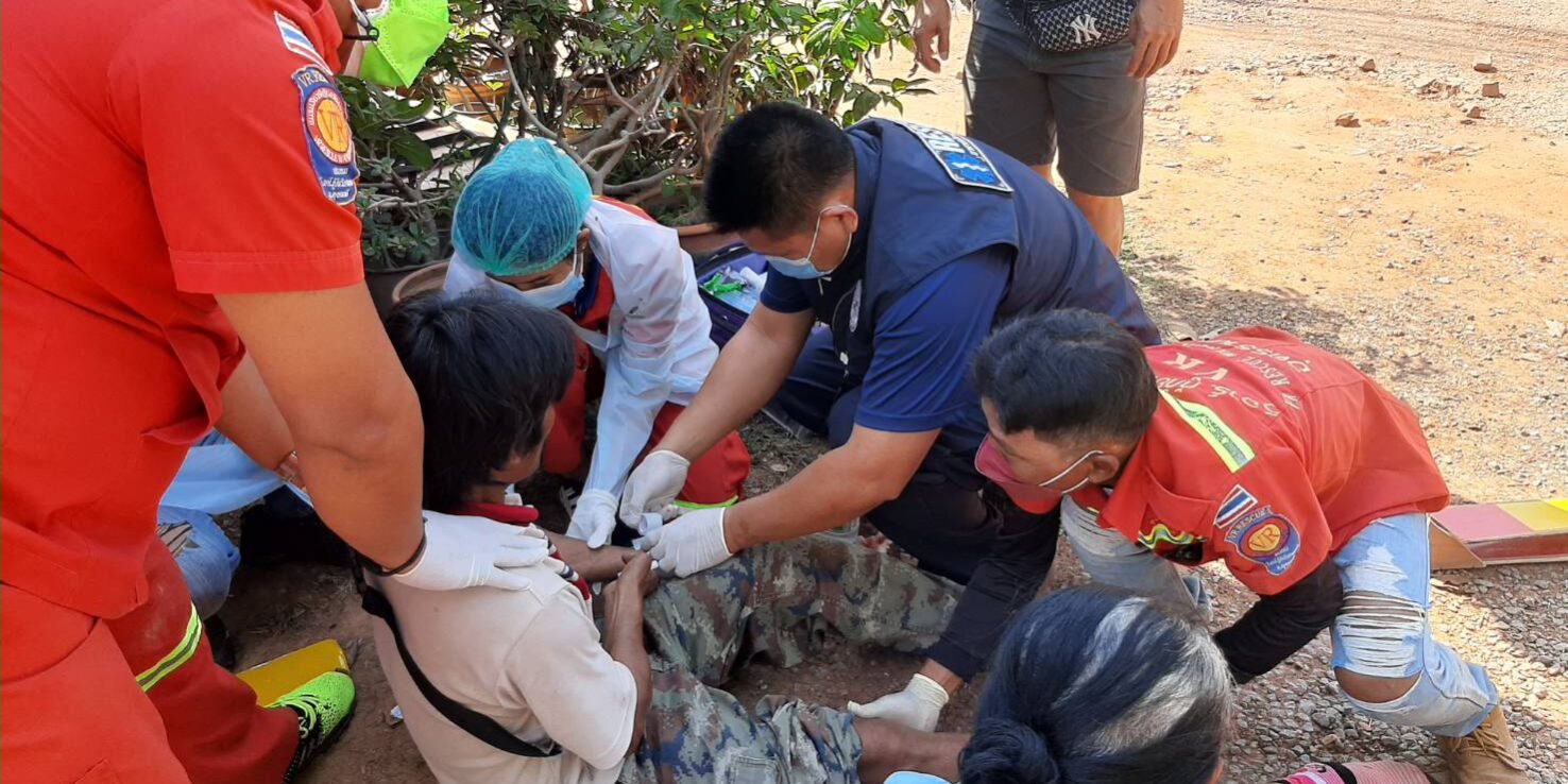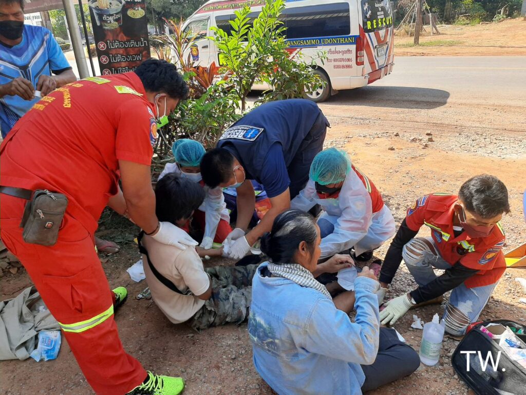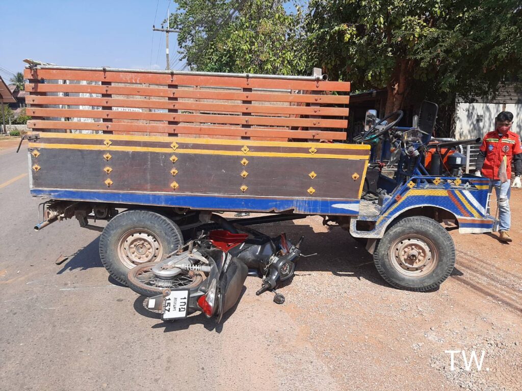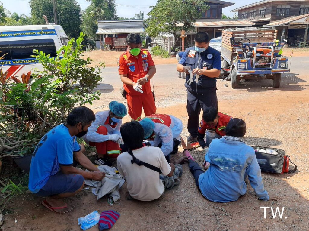 26/1/2565 เวลา 12.22 น. เกิดอุบัติเหตุรถจักรยานยนต์ชนกับรถการเกษตร (รถอีแต๋น)ที่บ้านหนองกุงทับม้า ถนน อ.วังสามหมอ – อ.วาริชภูมิ ชมรมวีอาร์กู้ภัยวังสามหมอ ออกตรวจสอบ ที่เกิดเหตุพบรถจักรยานยนต์ฮอนด้าเวฟ สี แดง-ดำ หมายเลขทะเบียน1 กฏ 157 สกลนคร สภาพ มุดอยู่ใต้ท้องรถการเกษตร(รถ อีแต๋น) เบื้องต้นมีผู้ได้รับบาดเจ็บ 2 ราย ชาย มีแผลที่ฝ่ามือ แขนซ้านผิดรูป ส่วนหญิงมีแผลถลอกตามร่างกาย เจ้าหน้าที่ปฐมพยาบาลเบื้องต้น ก่อนนำส่ง รพ.วังสามหมอ ต่อไป