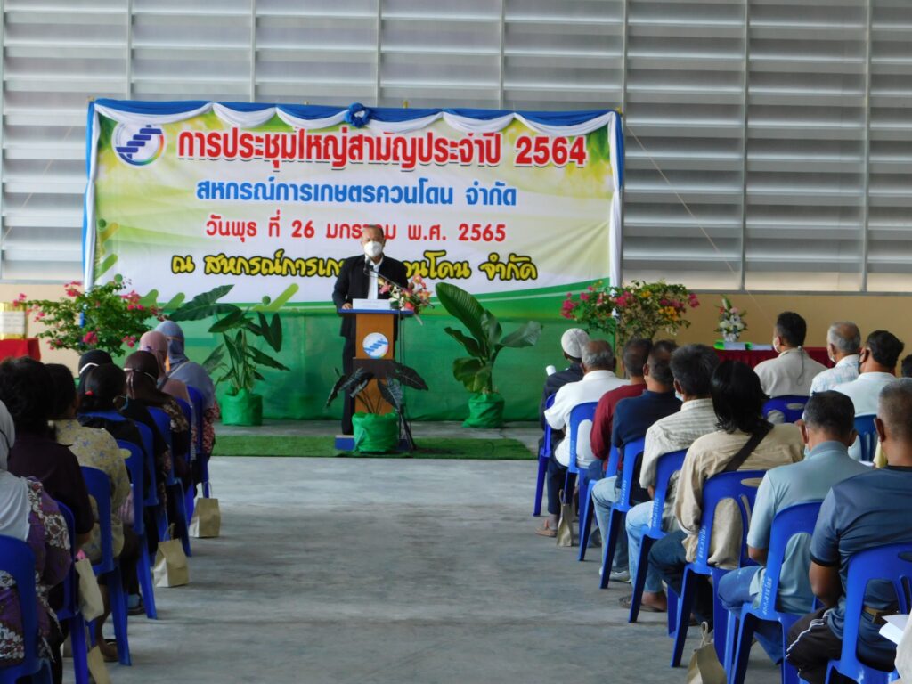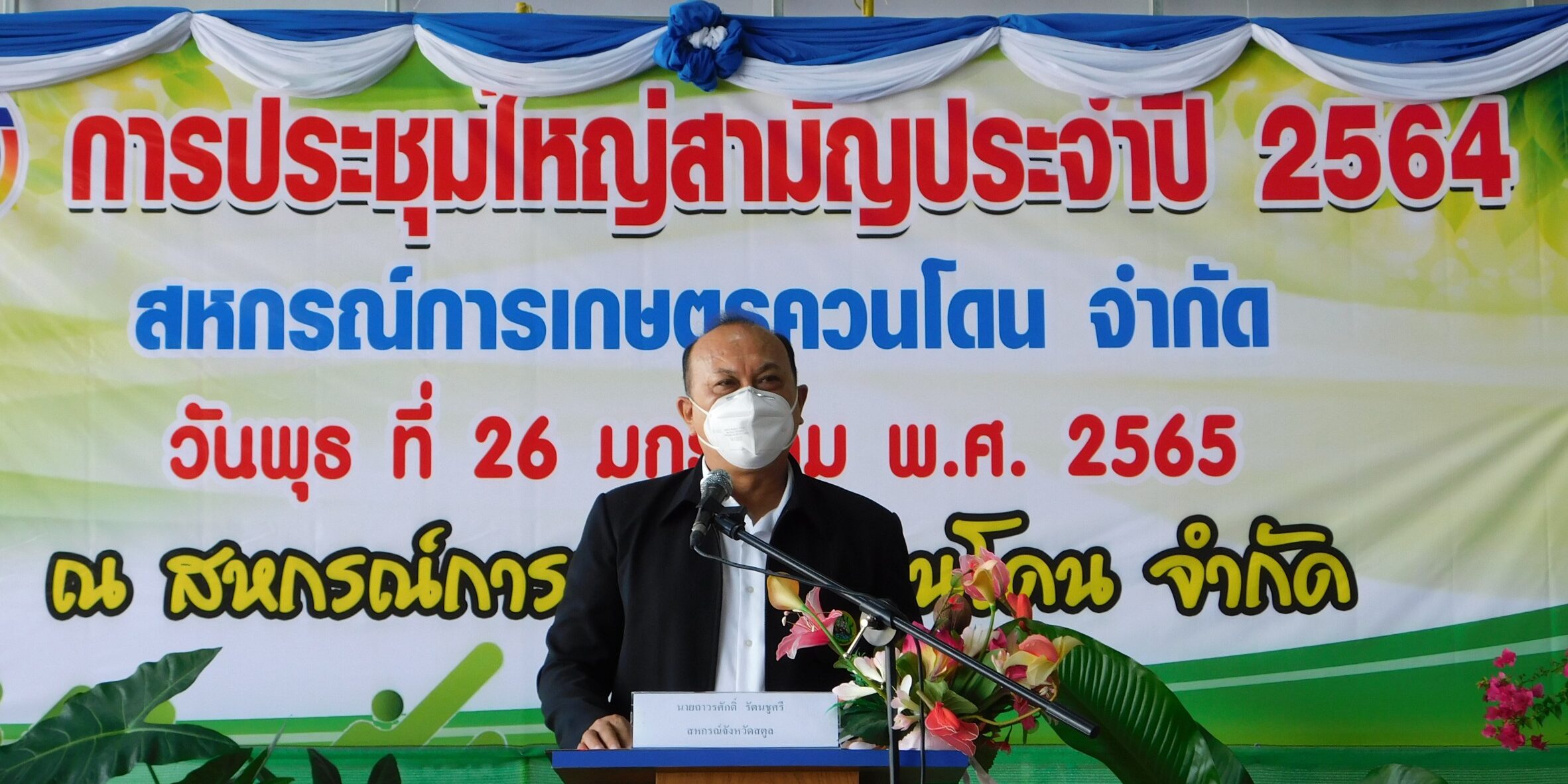 วันนี้ 26 มกราคม 2565 ที่ สหกรณ์การเกษตรควนโดน จำกัด นายถาวรศักดิ์ รัตนชูศรี สหกรณ์จังหวัดสตูล เป็นประธานในพิธีเปิดการประชุมใหญ่สามัญประจำปี 2564 ของสหกรณ์การเกษตรควนโดน จำกัด อ.ควนโดน จ.สตูล พร้อมด้วยเจ้าหน้าที่สหกรณ์ และผู้แทนสหกรณ์การเกษตรในจังหวัดสตูล ทั้งนี้ นายวินิช ตาเดอิน ประธานกรรมการดำเนินการในนามของสมาชิกสหกรณ์การเกษตรควนโดน จำกัด ได้ชี้แจงรายละเอียดงบการเงินซึ่งทำให้ทราบว่าสหกรณ์ได้พัฒนามาเรื่อย ๆ จนมีทุนหมุนเวียน 279 ล้านบาท มีสมาชิก 1,213 ครัวเรือน มีกำไรสุทธิประจำปี 9,485,426.55 บาท และสามารถให้บริการด้านการจำหน่ายสิ้นค้า เงินฝากและสิ้นเชื่อเพื่อการเกษตร ซึ่งเป็นการอำนวยประโยชน์ให้แก่สมาชิกสหกรณ์ และตอบข้อซักถามเกี่ยวกับงบการเงินของสหกรณ์ เพื่อให้สมาชิกของสหกรณ์ได้เข้าใจ และรับทราบถึงฐานะทางการเงินและผลการดำเนินงานของสหกรณ์ในรอบปีบัญชีที่ผ่านมา ในส่วนของสหกรณ์จังหวัดได้เข้าไปดูแลและส่งเสริมสหกรณ์และมีนโยบายส่งเสริมตามนโยบายของรัฐบาล เช่นโครงการเกษตรแปลงใหญ่และเกษตรอินทรีย์ แต่นโยบายทั้งหมดต้องผ่านสหกรณ์ในพื้นที่เพื่อเป้าหมายของสมาชิกและคุณภาพชีวิตที่ดีขึ้นของสมาชิกให้มีความเป็นอยู่ที่ดีขึ้น และการเข้าประชุมของสมาชิกทำให้สมาชิกได้มีส่วนร่วมในทุก ๆ ปี และความสำเร็จของสหกรณ์ สหกรณ์แห่งนี้จะเจริญก้าวหน้าได้อย่างรวดเร็ว สามารถยืนหยัดได้ด้วยตัวเองและเป็นองค์กรที่มีศักยภาพพอเพียงที่จะยอมรับมาตรการของรัฐบาลที่จะช่วยเหลือเกษตรกรผ่านทางสถาบันเกษตรกรได้ อำนวยความสะดวกให้แก่สมาชิกทั้งทางด้านการพัฒนาการผลิต การตลาด ให้มีรายได้เพิ่มขึ้น และมีคุณภาพชีวิตที่ดีขึ้นต่อไปในอนาคต ดังนั้นขอให้ทุกท่านได้ตระหนักถึงความสำคัญของสหกรณ์และความจำเป็นที่จะต้องพัฒนาให้เป็นสหกรณ์มีความเข็มแข็งต่อไป