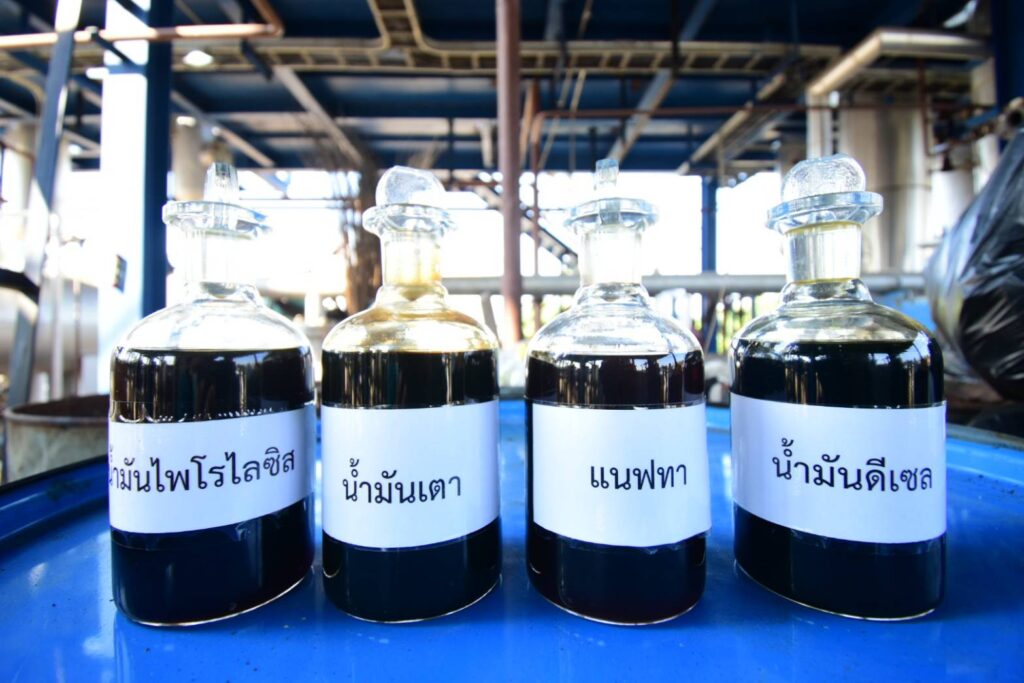 สำหรับขยะพลาสติก 1 กิโลกรัม (Dry basis) สามารถผลิตน้ำมันไพโรไลซิสได้ 1 ลิตร โดยที่องค์ประกอบของน้ำมันฯ ประกอบด้วย น้ำมันดีเซล แนฟทา และน้ำมันเตา ร้อยละ 53 , 32 และ 15 ตามลำดับ ซึ่งสัดส่วนของน้ำมันดีเซล ลดลง 7% เนื่องจากกากของเสียจากอุตสาหกรรมสี ที่นำมาใช้มาเป็นตัวเร่งปฏิกิริยาและเป็นวัตถุดิบร่วมในการผลิต มีสัดส่วนขององค์ประกอบไฮโดรคาร์บอนที่เบาซึ่งมาจากตัวทำละลายสี เมื่อทำการวิเคราะห์ต้นทุน พบว่า ต้นทุนจากคัดแยกขยะพลาสติก มีจำนวน 2 บาท/ลิตร ต้นทุนการผลิตน้ำมันจากขยะพลาสติก ที่กำลังการผลิตต่อเนื่อง 200 ลิตร/ชั่วโมง มีจำนวนที่ลดลง อยู่ที่ 6.5 บาท/ลิตร จาก เดิม 8 บาท/ลิตร และต้นทุนการกลั่นน้ำมันแยกลำดับส่วน คิดเป็น 4 บาท/ลิตร รวมต้นทุนการแปรรูปน้ำมันทั้งสิ้น 12.50 บาท/ลิตร ซึ่งถือว่าอยู่ในเกณฑ์ต่ำ หากจะมีการนำไปใช้ในเชิงพาณิชย์ ภาครัฐต้องมีกลไกสนับสนุนอีกหลายอย่าง ต้องมีการจับคู่กับเอกชน เพื่อนำเทคโนโลยีไปใช้ในการต่อยอดธุรกิจ ซึ่งศักยภาพของน้ำมันไพโรไลซิสนี้มีความเป็นไปได้อย่างมาก