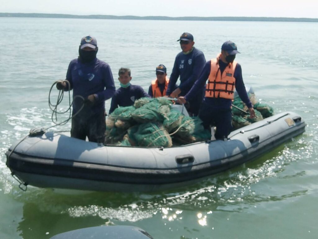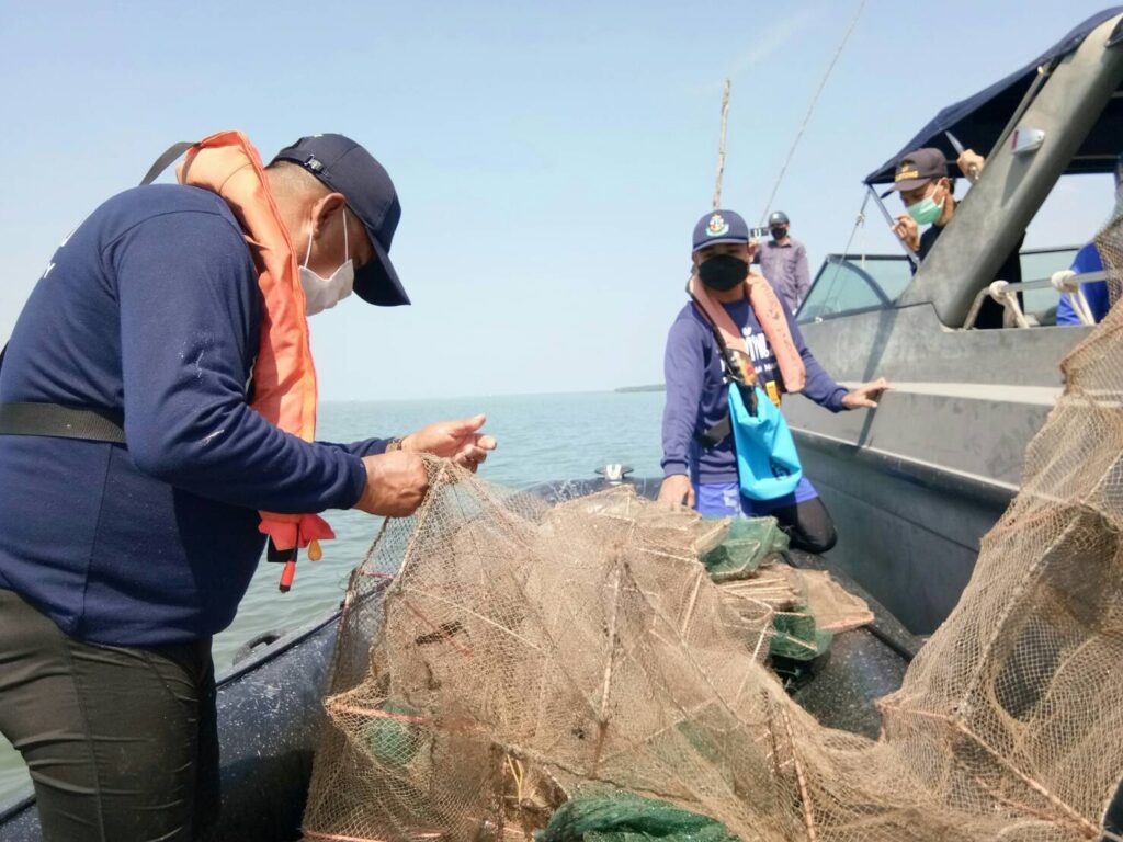 วันนี้ 28 มกราคม 2565 พล.ร.ท.สมพงษ์ นาคทอง ผู้บัญชาการทัพเรือภาค 3 และผู้อำนวยการ ศูนย์อำนวยการรักษาผลประโยชน์ของชาติทางทะเล ภาค3(ผบ.ทรภ.ภาค3/ผอ.ศรชล.ภาค3), น.อ.ธนฤกษ์ วรชาตินักรบ ผู้บังคับการ หน่วยเฉพาะกิจเพื่อแก้ไขปัญหาด้านความมั่นคงในพื้นที่ภาคใต้ ศรชล.ภาค3 และรองอำนวยการ ศูนย์อำนวยการรักษาผลประโยชน์ของชาติทางทะเล จังหวัดสตูล ศรชล.ภาค3 (ผบ.นก.กมต.ศรชล.ภาค 3/รอง ผอ.ศรชล.สต.ศรชล.ภาค3) บูรณาการกำลังร่วมกับนายโชคชัย เมืองสง หัวหน้าหน่วยป้องกันและปราบปรามประมงทะเลเกาะหลีเป๊ะ สตูล, น.ต.ปรัชญ์ ขำเจริญ หัวหน้าสถานีเรือละงู/รองผู้บังคับหน่วยรักษาความปลอดภัยทางทะเล กองทัพเรือ เกาะหลีเป๊ะ,และเจ้าหน้าที่ทหารเรือ,เจ้าหน้าที่หน่วยป้องกันและปราบปรามประมงทะเลเกาะหลีเป๊ะ สตูล, ศูนย์อนุรักษ์ทรัพยากรทางทะเลจังหวัดสตูล ,ตำรวจน้ำสตูล,ศูนย์อนุรักษ์ทรัพยากรป่าชายเลนที่ 24, ด่านศุลกากรสตูล,สำนักงานเจ้าท่าภูมิภาคสาขาสตูล, ชปพ.นสร. เข้าทำการตรวจสอบพื้นที่เป้าหมายตามที่ได้แจ้งมาบริเวณ เกาะฮันดู ร่องน้ำเจ๊ะบิลัง และร่องน้ำปากคลองตะเคียน จนกระทั้งได้ตรวจพบว่ามีการลักลอบวางเครื่องมือและอุปกรณ์ทำการประมงผิดกฎหมายชนิดลอบพับได้หรือไอ้โง่ ซึ่งมีช่องทางเข้าของสัตว์น้ำสลับซ้ายขวาอยู่ทางด้านข้างใช้สําหรับดักสัตว์น้ำ อยู่ในบริเวณดังกล่าวอยู่เป็นจำนวนมาก ในพิกัดที่ แลติจูด 6 องศา 39.0374 ลิปดา เหนือ ลองจิจูด 99 องศา 57.3989 ลิปดา ตะวันออก ห่างจากฝั่งประมาณ 419.69 เมตร จึงได้ทำการลื้อถอนลอบพับได้หรือไอ้โง่ออกจากบริเวณดังกล่าวขึ้นมาได้ทั้งหมดเป็นจำนวนทั้งสิ้น 117 ลูก จึงได้มอบหมายให้หน่วยป้องกันและปราบปรามประมงทะเลเกาะหลีเป๊ะ สตูล นำของกลางทั้งหมดนำส่ง สภ.เมืองสตูล เพื่อดำเนินคดีและหาผู้กระทำมาลงโทษตามกฎหมายต่อไป ซึ่งลอบพับได้หรือไอ้โง่เป็นเครื่องมือประมงที่ห้ามมิให้บุคคลใดมีไว้หรือครอบคลองเพื่อใช้ซึ่งเครื่องมือประมง จะผิดตาม พ.ร.บ.การประมง(ฉบับที่ 2) พ.ศ.2560 มาตรา 67