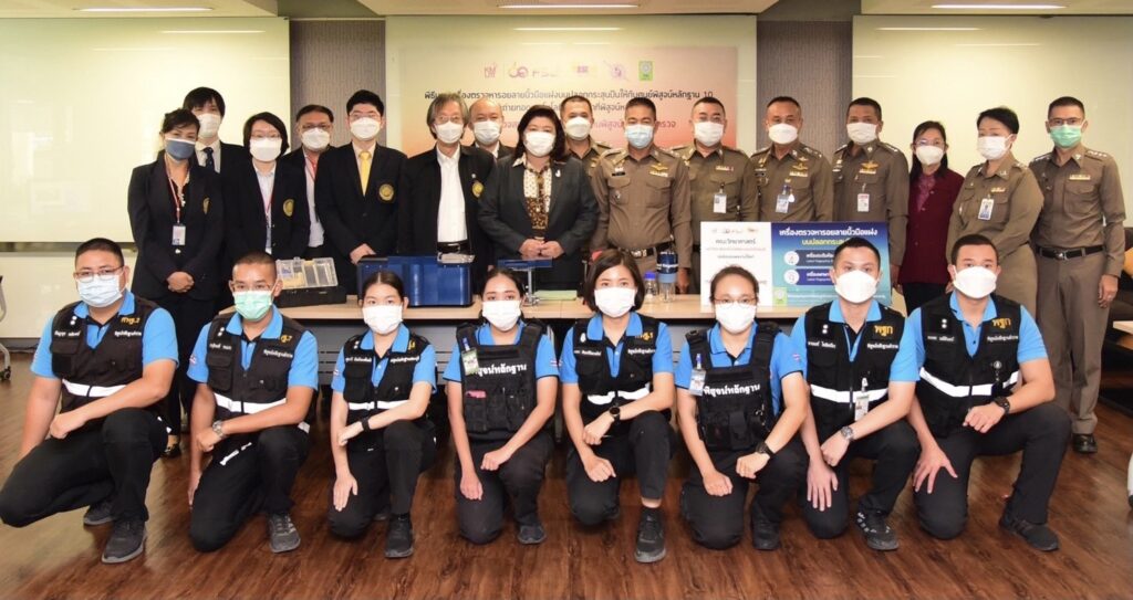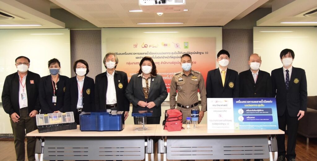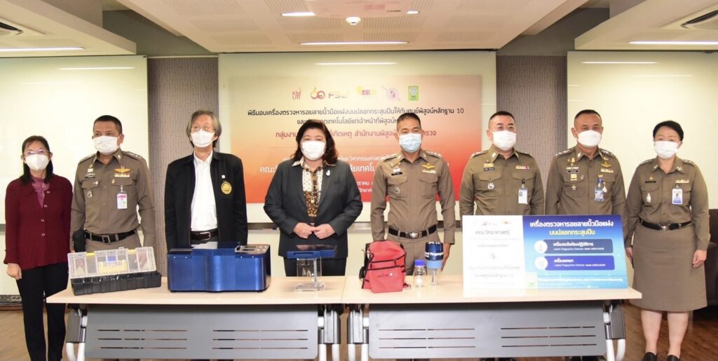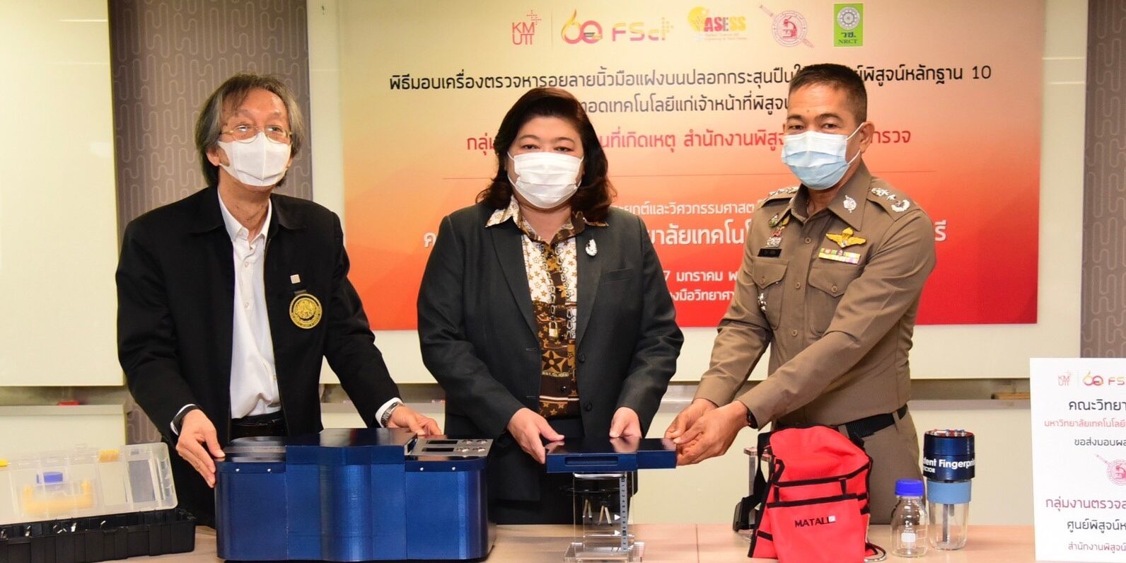 วันที่ 27 มกราคม 2565 สำนักงานการวิจัยแห่งชาติ (วช.) กระทรวงการอุดมศึกษา วิทยาศาสตร์ วิจัยและนวัตกรรม (อว.) ร่วมกับมหาวิทยาลัยเทคโนโลยีพระจอมเกล้าธนบุรี มอบเครื่องตรวจรอยนิ้วมือแฝงและถ่ายทอดเทคโนโลยีให้กับเจ้าหน้าที่ตรวจพิสูจน์หลักฐานกลุ่มงานตรวจสถานที่เกิดเหตุ สำนักงานพิสูจน์หลักฐานตำรวจ ณ มหาวิทยาลัยเทคโนโลยีพระจอมเกล้าธนบุรี