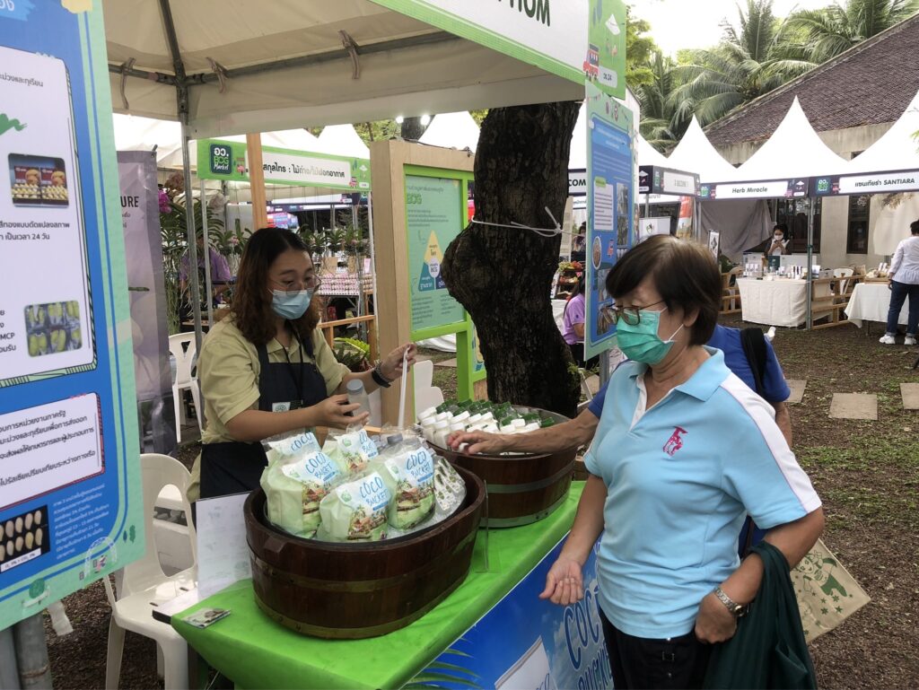 ผลิตภัณฑ์ในบูธที่ (วช.) นำมาจำหน่ายในงาน “อว. BCG Market” ได้รับการสนับสนุนทุนวิจัยจาก (วช.) ทุกผลิตภัณฑ์ ตัวอย่างผลิตภัณฑ์ อาทิ เบเกอรี่ลดพลังงานจากผลไม้ท้องถิ่น,เค้กกล้วยหอมทอง,เค้กสับปะรดศรีราชา,เค้กขนุน,เค้กส้มสายน้ำผึ้ง,ร้านสวนดุสิตโฮมเบเกอรี่,Envi Mask หน้ากากนวัตกรรมป้องกันโควิด-19 และฝุ่น PM 2.5 ร้าน Envi Mask,กาแฟดอยเจดีย์ DOL CHEDI COFFEE AND GREEN TEA ร้านผลิตภัณฑ์ออแกนิค จังหวัดเชียงราย,น้ำพริกจากหัวปลาสลิด,คุกกี้เสริมแคลเซียมจากก้างปลาสลิด,เจลาตินจากเกล็ดปลาสลิด,เยลลี่ต้านอนุมูลอิสระจากเจลาตินปลา และผงปรุงรสจากเศษเนื้อปลาสลิด ร้านของดีสมุทรปราการ,และผลิตภัณฑ์จากมะพร้าวน้ำหอม,วุ้นในลูกมะพร้าว,น้ำมะพร้าวน้ำหอม 100%,โคโค่นีท เนื้อมะพร้าวน้ำหอม,พุดดิ้งมะพร้าวน้ำหอม และพุดดิ้งมะพร้าวน้ำหอมพร้อมดื่ม ร้าน NAI NAM HOM