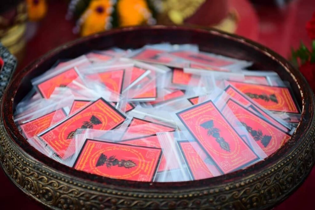 แผ่นยันต์และสติ๊กเกอร์เรียกทรัพย์ท้าวเวสสุวรรณเจ้าสัวสยาม ล้อมรอบด้วยยันต์ครู ตำราวัดท่าซุง และพระคาถาเงินล้าน ยันต์ดวงเศรษฐี ยันต์ปลดหนี้ รวมถึงยันต์หนุนดวง ช่วยเสริมเรื่องการเงิน โชคลาภ และผู้ใหญ่เมตตา หากค้าขาย หรือทำงานที่เจอผู้ใหญ่ ลูกค้า หรือเพื่อนร่วมงาน จะช่วยให้ได้รับความเมตตา มีโชคด้านการเงิน มีความคล่องตัว ผ่านพิธีพุทธาภิเษกแบบสุดอลัง…สุดขลัง โดยพระอาจารย์โต เจ้าอาวาสวัดพระบาทปางแฟน อ.ดอยสะเก็ด จ.เชียงใหม่