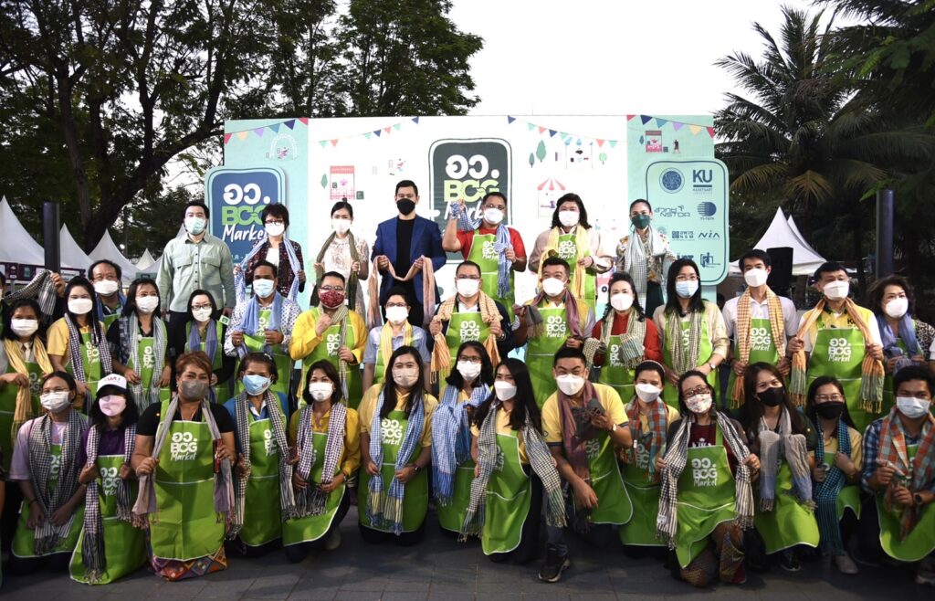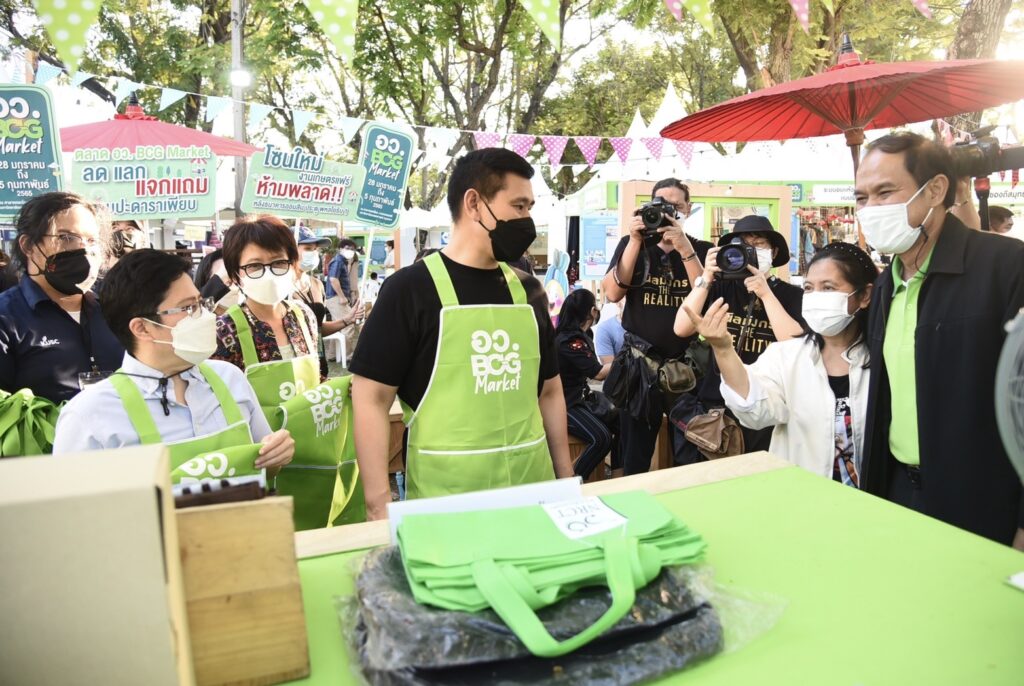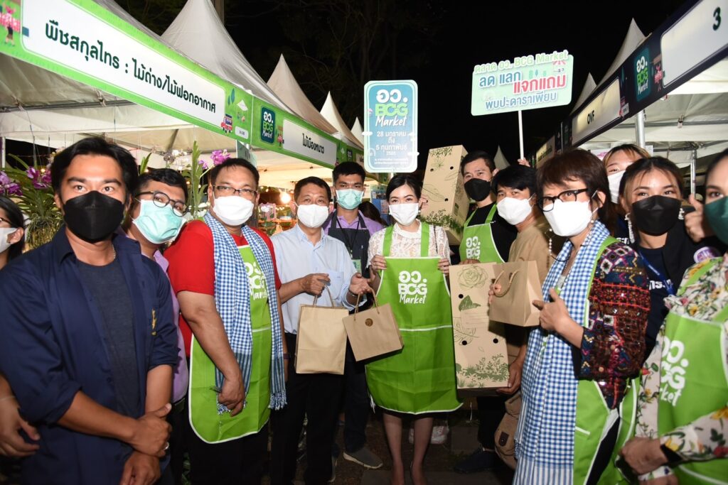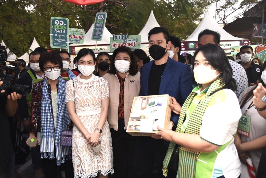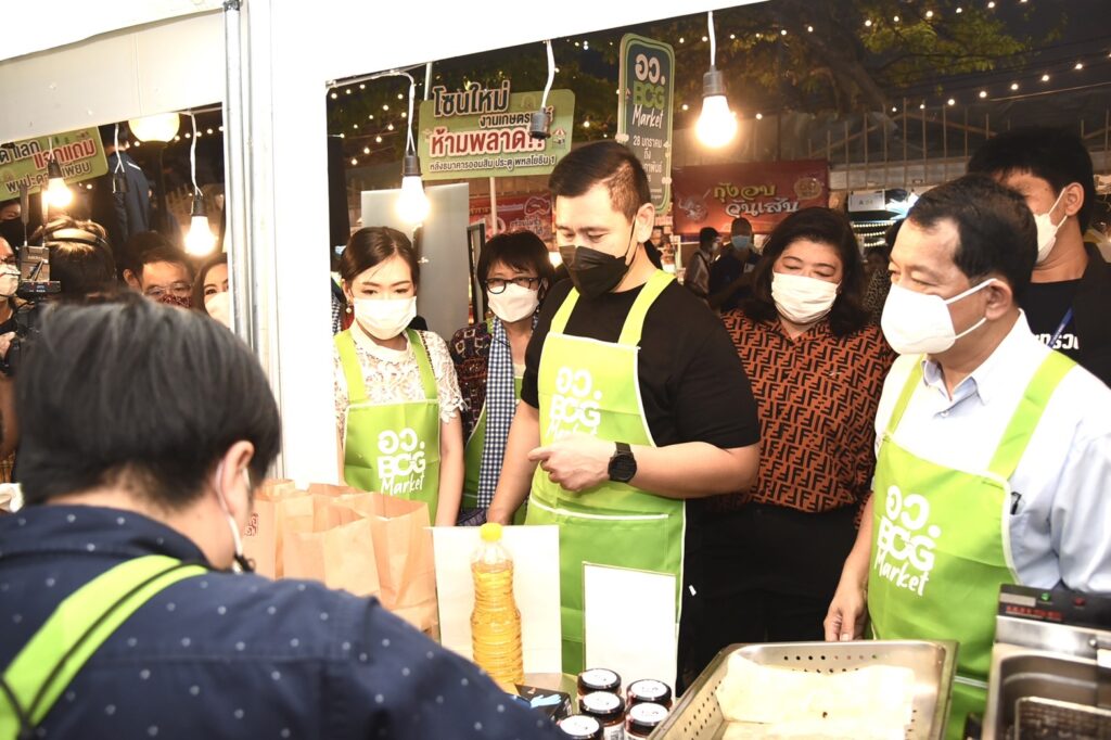 พิธีเปิดงาน “อว. BCG Market” ในงานเกษตรแฟร์ ปี 2565 เป็นพิธีเปิดงานที่ให้ผู้มาร่วมงานช่วยกันจับผ้าพันคอและแกะผ้าพันคอที่จัดเตรียมไว้ ใครจับผ้าพันคอผืนไหนก็จะได้ผ้าผืนนั้นกลับไป ถือเป็นการเปิดงานที่พิเศษ และในเวลาต่อมา รศ.(พิเศษ) ดร.ดวงฤทธิ์ เบ็ญจาธิกุล ชัยรุ่งเรือง เลขานุการรัฐมนตรีว่าการและโฆษกกระทรวง กระทรวงการอุดมศึกษา วิทยาศาสตร์ วิจัยและนวัตกรรม และ ศ.ดร.นพ.สิริฤกษ์ ทรงศิวิไล ปลัดกระทรวงการอุดมศึกษา วิทยาศาสตร์ วิจัยและนวัตกรรม พร้อมด้วย ดร.วิภารัตน์ ดีอ่อง ผู้อำนวยการสำนักงานการวิจัยแห่งชาติ ได้เยี่ยมชมบูธผลงานวิจัย พร้อมมอบผ้ากันเปื้อน ให้เป็นที่ระลึกกับนักวิจัยที่นำผลงานวิจัยมาร่วมงานและจัดจำหน่ายผลิตภัณฑ์จากผลงานวิจัยที่ได้รับการสนับสนุนจาก วช. ที่บูธ อว. BCG Market ในงานเกษตรแฟร์ ปี 2565 ณ ศาลาหกเหลี่ยม มหาวิทยาลัยเกษตรศาสตร์ กรุงเทพมหานคร