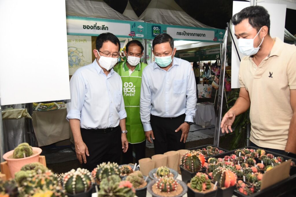 วันที่ 30 มกราคม 2565 : ศ.พิเศษ ดร. เอนก เหล่าธรรมทัศน์ รมว.อว. มอบหมายให้ รศ.(พิเศษ) ดร.ดวงฤทธิ์ เบ็ญจาธิกุล ชัยรุ่งเรือง เลขานุการรัฐมนตรีว่าการกระทรวง อว. และโฆษกกระทรวง กระทรวงการอุดมศึกษา วิทยาศาสตร์ วิจัยและนวัตกรรม เป็นประธานเปิดงาน “อว. BCG Market” ในงานเกษตรแฟร์ ปี 2565 พร้อมเยี่ยมชมบูธผลงานวิจัยกว่า 100 ผลงาน โดยมี ดร.จงรัก วัชรินทร์รัตน์ อธิการบดีมหาวิทยาลัยเกษตรศาสตร์ กล่าวต้อนรับ และ ดร. จันทร์เพ็ญ เมฆาอภิรักษ์ ผู้ตรวจราชการกระทรวงการอุดมศึกษา วิทยาศาสตร์ วิจัยและนวัตกรรม (อว.) กล่าวรายงานโครงการ อว. BCG Market” ณ เวที หน้าศาลาหกเหลี่ยม มหาวิทยาลัยเกษตรศาสตร์ กรุงเทพมหานคร