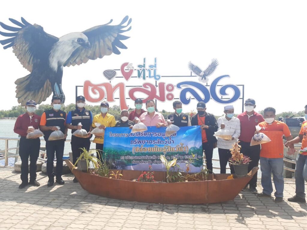 วันนี้ 1 ก.พ.2565 พ.ต.ท.ศิโรดม สนุ่นดี สว.ส.รน.3 กก.9 บก.รน. พร้อมข้าราชการตำรวจน้ำสตูลรวม 4 นาย ร่วมกับ อบต.ตำมะลัง ต.ตำมะลัง อ.เมือง จ.สตูล และคุณมานิต กวีรัตน์, ครู กศน.ตำมะลัง , ตัวแทนกลุ่มประมงเรือเล็ก, องค์การสะพานปลา จัดกิจกรรมโครงการส่งเสริมการอนุรักษ์ทรัพยากรสัตว์น้ำ ประจำปี 2565 ได้ทำการปล่อยพันธุ์กุ้งกุลาดำ จำนวน 15,000 ตัว ณ บริเวณคลองตำมะลัง เพื่อปลูกจิตสำนึกในการอนุรักษ์ทรัพยากรสัตว์น้ำ โดยมี นายมะหมัด หลงกูนัน นายกองค์การบริหารส่วนตำบลตำมะลัง เป็นประธานในโครงการส่งเสริมการอนุรักษ์ทรัพยากรสัตว์น้ำ