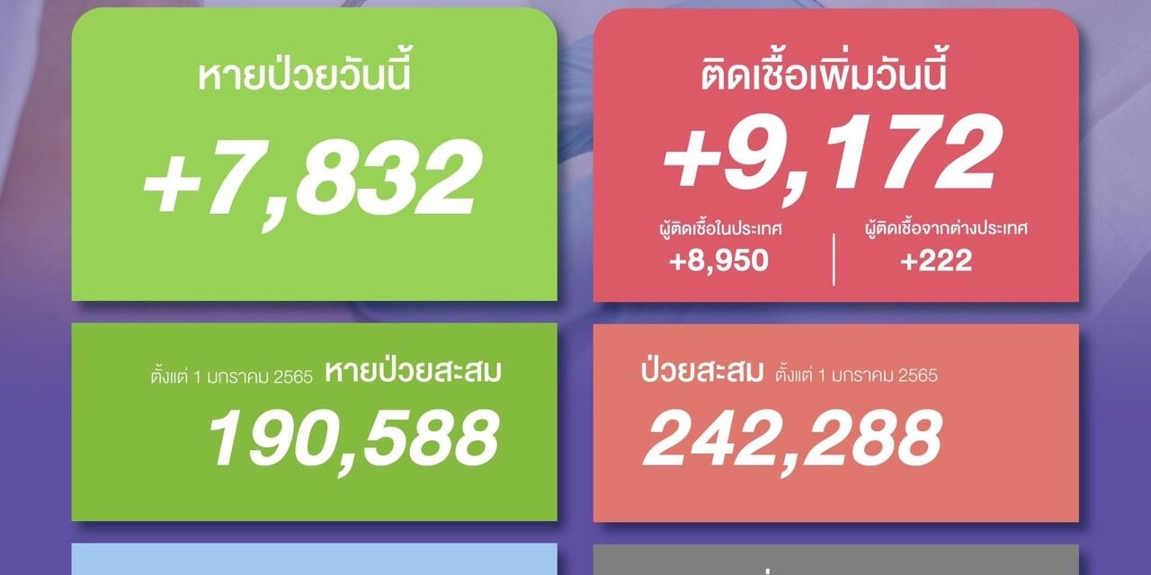 หายป่วยสะสม 190,588 ราย (ตั้งแต่ 1 มกราคม 2565)