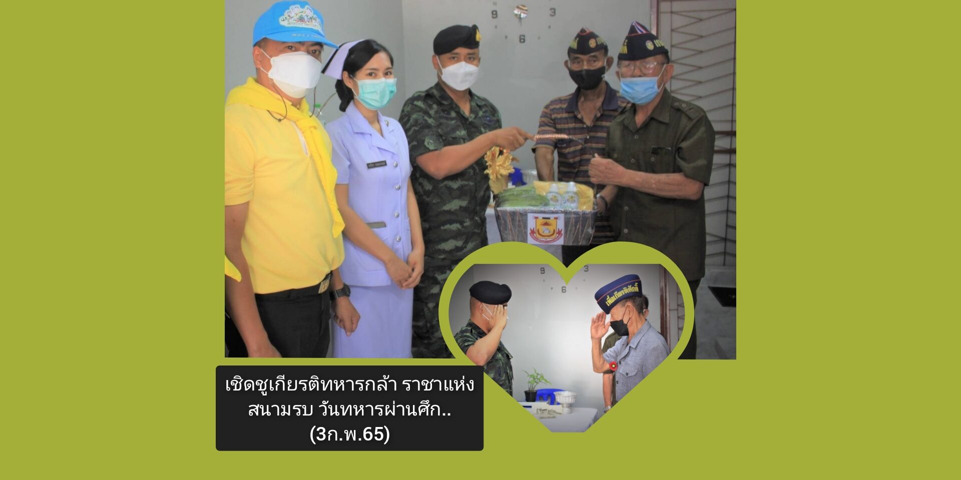 วันนี้ (3 ก.พ. 65) ผบ.ป.9พัน.9 พร้อมด้วย กำลังพลจิตอาสาพระราชทาน และ พยาบาลโรงพยาบาลค่ายสุรสีห์ เข้าเยี่ยมเยียนอดีตข้าราชการ กองพันทหารปืนใหญ่ที่ 9 ซึ่งเคยร่วมปฏิบัติหน้าที่ ในสงครามเวียดนาม ผลัดที่ 3 ออกเดินทางเข้าร่วม เมื่อ 14 ก.ค. พ.ศ. 2513 มี 3 นาย ดังนี้