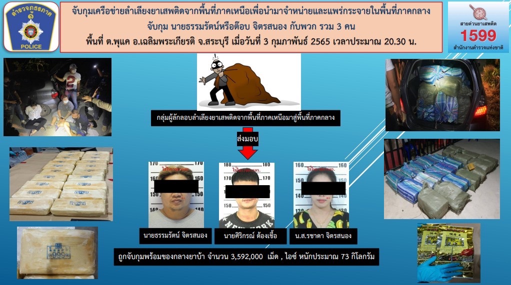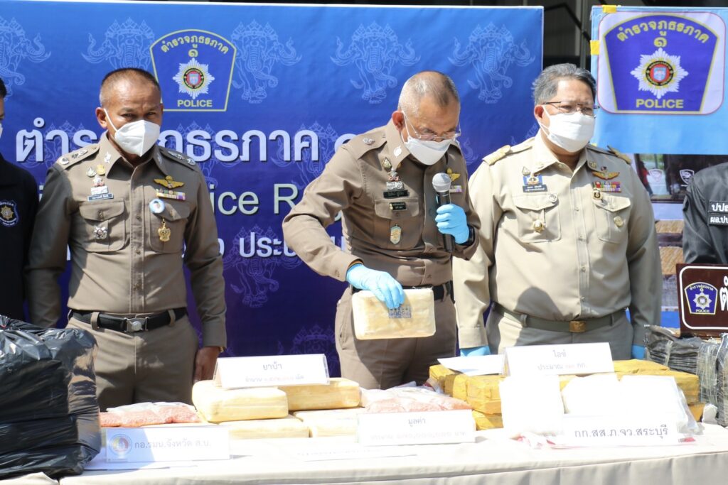 วันที่ 4 ก.พ.65 เวลา 11.00 น. ณ ตำรวจภูธรภาค 1 : พล.ต.ท.จิรพัฒน์ ภูมิจิตร ผบช.ภ.1 พร้อมด้วย พล.ต.ต.ชยานนท์ มีสติ ผบก.ภ.จ.สระบุรี,นายสมภพ สมิตะสิริ รองผู้ว่าราชการจังหวัดสระบุรี,นายประสาร หยงสตาร์ ผอ.ปปส.ภาค 1,นายรัชพล ปาละกูล ผอ.ส่วนอำนวยการบังคับใช้กฎหมาย สำนักงาน ป.ป.ส. ภาค 1 และ พ.ต.อ.วันชนะ บวรบุญ รอง ผบก.ขส.บช.ปส. ร่วมผลการจับกุมคดียาเสพติดรายสำคัญ จำนวน 2 คดี โดยมีรายละเอียดดังต่อไปนี้