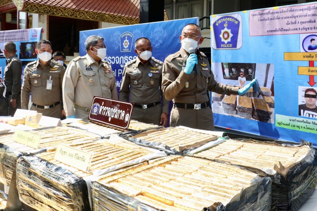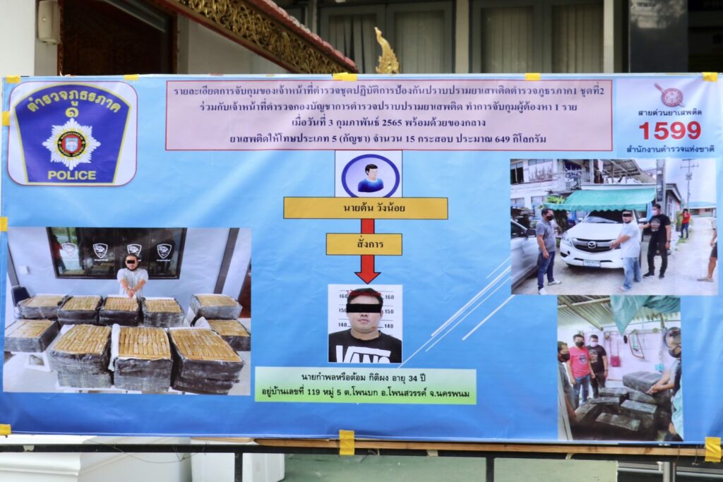 คดีที่ 2 จับผู้ค้ายาเสพติดรายใหญ่ ยึดกัญชา น้ำหนัก 649 กก. จับกุมผู้ต้องหา 1 ราย ได้แก่ นายกำพล หรือต้อม กิติผง อายุ 34 ปี อยู่บ้านเลขที่ 119 หมู่ 5 ต.โพนบก อ.โพนสวรรค์ จ.นครพนม พร้อมด้วยของกลาง ยาเสพติดให้โทษประเภท 5 (กัญชา) ซึ่งบรรจุอยู่ภายในกระสอบถุงปุ๋ย ห่อด้วยถุงพลาสติกสีดำ พันทับด้วยพลาสติกใส จำนวน 11 กระสอบ น้ำหนักประมาณ 477 กิโลกรัม โดยแต่ละกระสอบจะมียาเสพติดให้โทษประเภท 5 (กัญชา) พันทับด้วยกระดาษฟอยล์ สีทอง จำนวนกระสอบละ 44 ก้อน จำนวน 4 กระสอบ และจำนวนกระสอบละ 43 ก้อน จำนวน 7 กระสอบ ซึ่งตรวจค้นพบอยู่ภายในห้องเก็บของ หน้าห้องน้ำบ้านเลขที่ 183 หมู่ที่ 5 ต.บ่อตาโล่ อ.วังน้อย จ.พระนครศรีอยุธยา,ยาเสพติดให้โทษประเภท 5 (กัญชา) ซึ่งบรรจุอยู่ภายในกระสอบถุงปุ๋ย ห่อด้วยถุงพลาสติกสีดำ พันทับด้วยพลาสติกใส จำนวน 4 กระสอบ น้ำหนักประมาณ 172 กิโลกรัม โดยแต่ละกระสอบจะมียาเสพติดให้โทษประเภท 5 (กัญชา) พันทับด้วยกระดาษฟอยล์ สีทอง จำนวนกระสอบละ 43 ก้อน ซึ่งตรวจค้นพบอยู่ภายในกระบะบรรทุกท้ายรถยนต์กระบะยี่ห้อมาสด้า รุ่น BT – 50 สีขาว หมายเลขทะเบียน 1ฒท 8070 กรุงเทพมหานคร