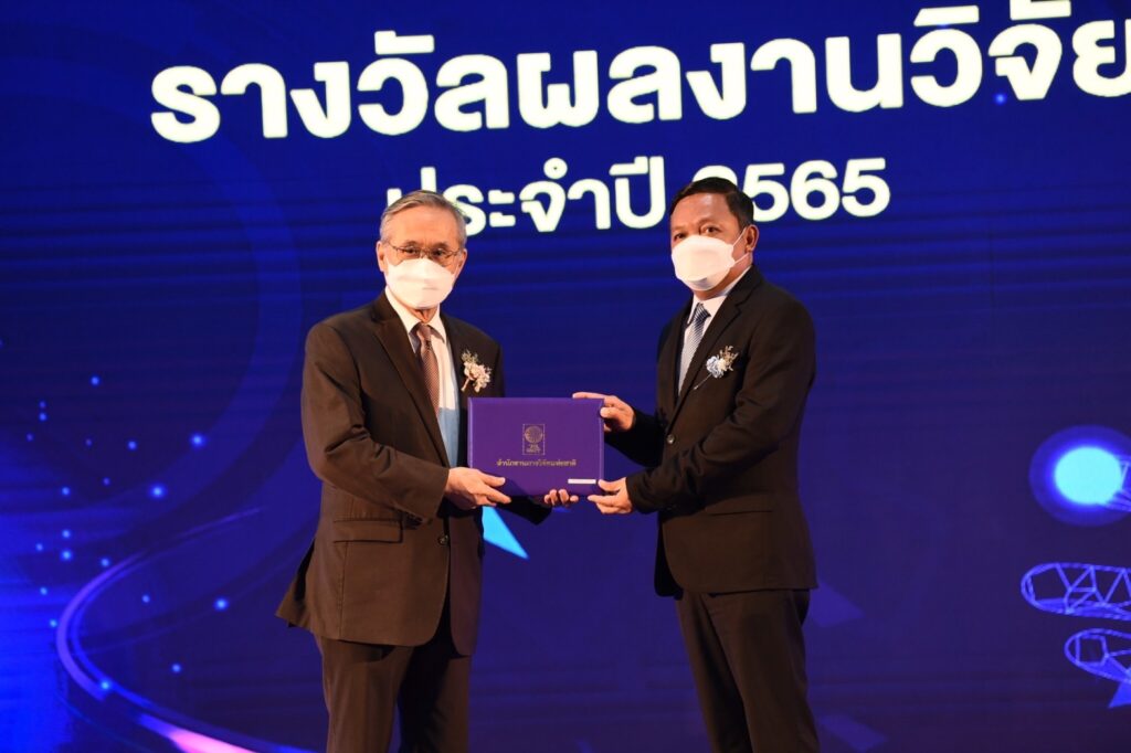 เมื่อวันที่ 2 กุมภาพันธ์ 2565 ที่ผ่านมา : ผศ.ดร.พีระศักดิ์ ฉายประสาท คณบดีคณะเกษตรศาสตร์ทรัพยากรธรรมชาติ และสิ่งแวดล้อม มหาวิทยาลัยนเรศวร เจ้าของผลงาน “ศึกษาวิจัยมะม่วงให้ได้คุณภาพมาตรฐานส่งออก” เข้ารับรางวัลผลงานวิจัย ระดับดี ในงานวันนักประดิษฐ์ 2564-2565 จากรองนายกรัฐมนตรี และรัฐมนตรีว่าการกระทรวงการต่างประเทศ (นายดอน ปรมัตถ์วินัย) เผยสามารถยืดอายุการเก็บรักษามะม่วงน้ำดอกไม้สีทองได้นาน 33 วัน จากเดิม 15 วัน โดยการจัดการแบบครบวงจรจากต้นทาง สร้างความมั่นคงแก่เกษตรกร และเพิ่มโอกาสการเติบโตในตลาดโลก เตรียมส่งออกจริง ขนส่งทางเรือเดือนมีนาคม 2565