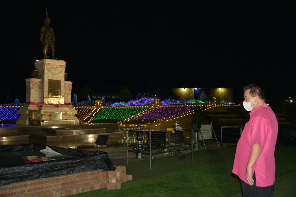 เมื่อวันที่ ๓ กุมภาพันธ์ ๒๕๖๕ นายจำเริญ สละชีพ นายกเทศมนตรีเมืองลพบุรี ได้ทุ่มเทการจัดตกแต่งประดับไฟ แสงสี จัดสวนไม้ดอกไม้ประดับ บริเวณวงเวียนพระบรมราชานุสาวรีย์สมเด็จพระนารายณ์มหาราช ของการจัดงานแผ่นดินสมเด็จพระนารายณ์มหาราชประจำปี ๒๕๖๕ ระหว่างวันที่ ๑๑ – ๒๐ กุมภาพันธ์ ๒๕๖๕ ครั้งนี้ ไม่มีงานใหญ่ ไม่มีการแสดง ไม่มีแสง สี เสียง เป็นการจัดงานเพื่อเทิดพระเกียรติสมเด็จพระนารายณ์ฯ มีรำบวงสรวง พิธีทำบุญ บวงสรวงและมีการจัดตกแต่งสถานที่ ตกแต่งโบราณสถาน จัดแต่งประดับไฟ เปิดวังนารายณ์ให้เดินแต่งไทยถ่ายรูป โดยทาง นายจำเริญ สละชีพ นายกเทศมนตรีเมืองลพบุรี ได้จัดตกแต่งวงเวียนพระบรมราชานุสาวรีย์สมเด็จพระนารายณ์มหาราช อย่างยิ่งใหญ่ตระการตา ด้วยการประดับไฟ แสงสี จัดสวนไม้ดอกไม้ประดับด้วยพันธุ์ไม้นานาชนิด พร้อมเชิญชวนให้ประชาชนและนักท่องเที่ยวได้เข้าชมความงดงาม บันทึกภาพประทับใจ ในการจัดงานในครั้งนี้