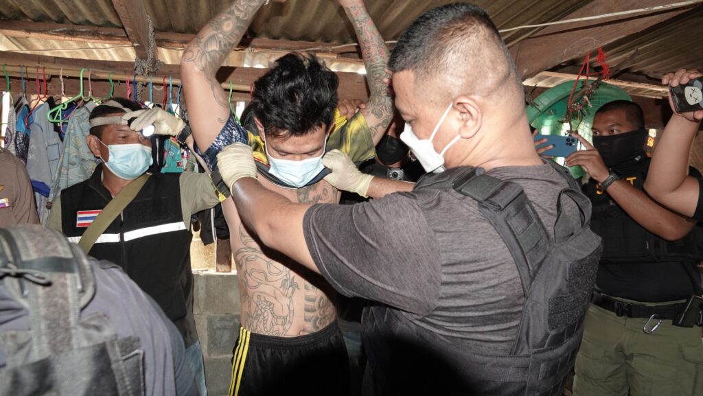 จากนั้นได้เข้าตรวจค้นเซฟเฮ้าส์ลับที่ใช้พักคนไทยก่อนข้ามชายแดน 2 จุด ใน ต.โคกสูง อ.โคกสูง จ.สระแก้ว พบพยานหลักฐาน เช่น สมุดบัญชีธนาคาร ระบุชื่อเจ้าของบัญชี น.ส.ชุติมา ประนาประโคน กับ นายธนากร จันทรภิรมย์ หนังสือผ่านแดน (Border Pass) ของผู้ต้องหา สมุดจดบันทึกรายการเข้าออกและค่าใช้จ่าย จำนวน 1 เล่ม
