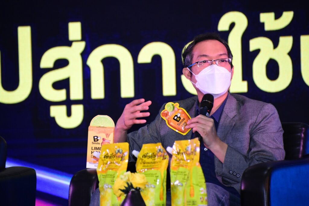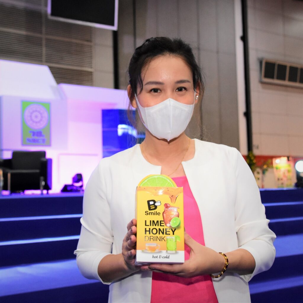การเสวนา “ผลักดันงานวิจัยไปสู่การใช้ประโยชน์ Success Case : Bee Smile งานวิจัยที่…ขายได้จริง” ในวันนี้ นางสาวสรัลภัค จิรโรจน์วัฒน ได้นำประสบการณ์จาก บริษัท บี-สไมล์ ฟู้ด แอนด์ เบเวอร์เรจ จำกัด ที่นำผลิตภัณฑ์ไปปรึกษากับโครงการการพัฒนาผลิตภัณฑ์ Innovative house ว่า บริษัท บี-สไมล์ ฟู้ด แอนด์ เบเวอร์เรจ จำกัด ได้ทำผลิตภัณฑ์น้ำผึ้งผสมน้ำมะนาวสด บรรจุกล่อง และบรรจุถุงขนาดใหญ่ จากเริ่มแรกปัญหาของบริษัทที่ทำธุรกิจแฟรนไชส์ในแบรนด์ผึ้งยิ้ม และได้มีการส่งออกไปยังประเทศเพื่อนบ้าน แต่การขนส่งใช้เวลาหลายวันทำให้ผลิตภัณฑ์เสียระหว่างการขนส่ง ทางบริษัทจึงอยากแก้ปัญหาดังกล่าว จึงนำปัญหาเข้ามาปรึกษากับโครงการการพัฒนาผลิตภัณฑ์ Innovative house และทางบริษัทได้ตั้งโจทย์ให้กับโครงการการพัฒนาผลิตภัณฑ์ Innovative house ไว้ 3 ข้อ คือ 1.สินค้าต้องเป็นวัตถุธรรมชาติ น้ำผึ้งยังต้องเป็นน้ำผึ้งดอกลำไยแท้ น้ำมะนาวสด ผลไม้สด,2.สามารถยืดอายุสินค้า เพื่อให้สะดวกในการขนส่ง และ 3.ต้องประหยัดเงินในการขนส่งด้วย