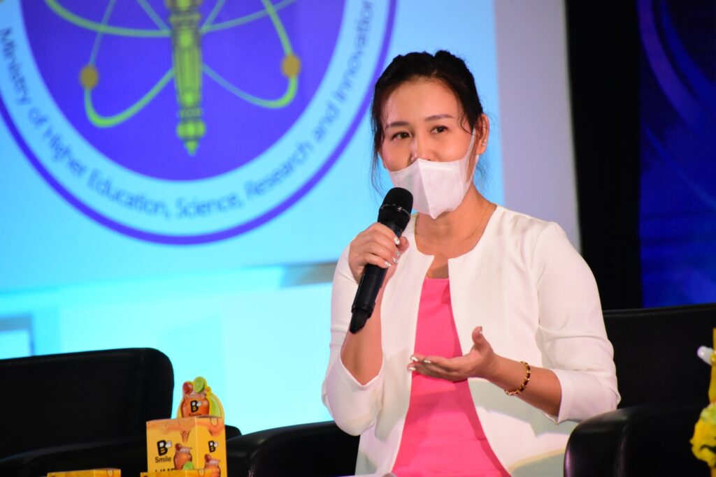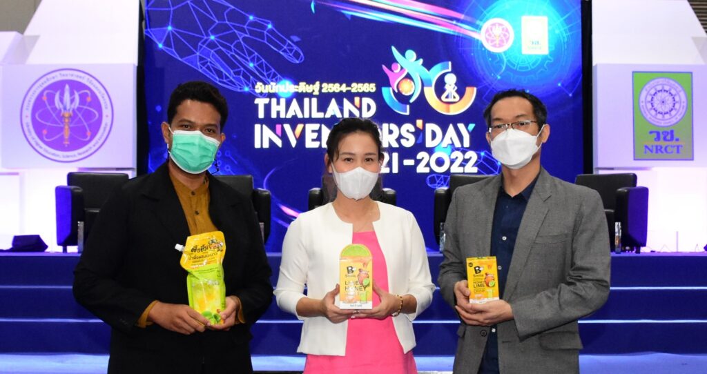 วันที่ 3 กุมภาพันธ์ 2565 : สำนักงานการวิจัยแห่งชาติ (วช.) ภายใต้ กระทรวงการอุดมศึกษา วิทยาศาสตร์ วิจัยและนวัตกรรม (อว.) เปิดเวทีเสวนา “ผลักดันงานวิจัยไปสู่การใช้ประโยชน์ Success Case : Bee Smile งานวิจัยที่…ขายได้จริง” ในงาน “วันนักประดิษฐ์” ประจำปี 2564–2565” ผู้ร่วมเสวนาที่มาร่วมให้ทัศนะประกอบด้วย นางสาวสรัลภัค จิรโรจน์วัฒน (บริษัท บี-สไมล์ ฟู้ด แอนด์ เบเวอร์เรจ จำกัด),นายกิตติเชษฐ์ ไพรวัลย์ นักวิจัยคณะเกษตรศาสตร์ ทรัพยากรธรรมชาติและสิ่งแวดล้อม มหาวิทยาลัยนเรศวร และนายนันทชัย สันทัดการ นักออกแบบบรรจุภัณฑ์และสร้างแบรนด์ บริษัท Design SenseLimetrd Partnership จำกัด ดำเนินรายการโดย น.ส.พิมพ์ภิดา วิชญพิมพ์จุฬา และน.ส.สุกัญญา เสเกกุล ผู้ประสานงานชุดโครงการการพัฒนาผลิตภัณฑ์ Innovative house