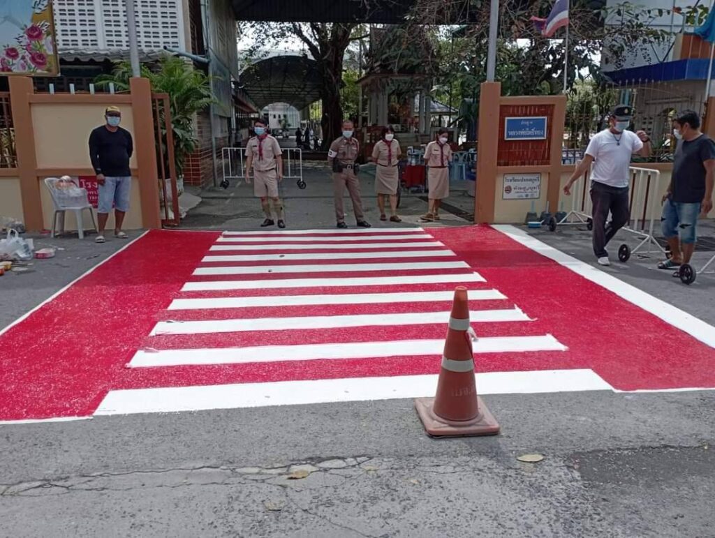 พนักงานเทศกิจเทศบาลเมืองสิงห์บุรี ร่วมกับตำรวจจราจรสถานีตำรวจภูธรเมืองสิงห์บุรี ทาสีทางม้าลายใหม่หน้าโรงเรียนอนุบาลสิงห์บุรี เนื่องจากใช้งานมานานสีซีดจาง โดยเล็งเห็นความปลอดภัยสำหรับผู้ปกครอง นักเรียน และผู้ที่สัญจรผ่านไปมาเป็นจำนวนมากมองเห็นได้ชัดเกิดความปลอดภัย และตระหนักถึงเครื่องหมายจราจร โดยทำการทาสีพื้นผิวใหม่ หน้าโรงเรียนอำเภอเมืองทั้ง 4 แห่ง ได้แก่ 1.โรงเรียนอนุบาลสิงห์บุรี 2.โรงเรียนวัดพรหมสาคร 3.โรงเรียนเทศบาล 4 4.วิทยาลัยอาชีวศึกษาสิงห์บุรี ถือเป็นแหล่งชุมชนที่คนมักใช้เดินสัญจรข้ามถนนกันเป็นประจำเกิดความปลอดภัยกับผู้ใช้รถใช้ถนนในจังหวัดสิงห์บุรี ไม่ให้เหมือนเหตุการณ์คนเดินข้ามถนนทางม้าลายในกรุงเทพถูกรถชนเสียชีวิตเป็นอุทาหรณ์ที่ต้องรีบหาวิธีป้องกันชีวิตและทรัพย์สินความปลอดภัยของประชาชนไม่ให้เกิดซ้ำขึ้นอีก