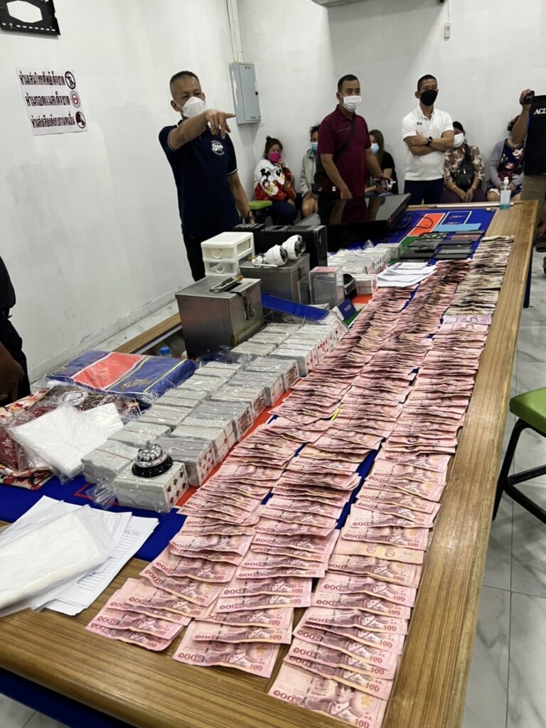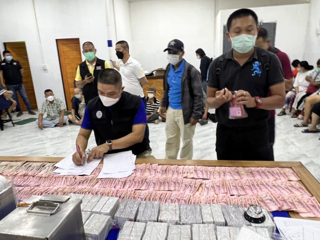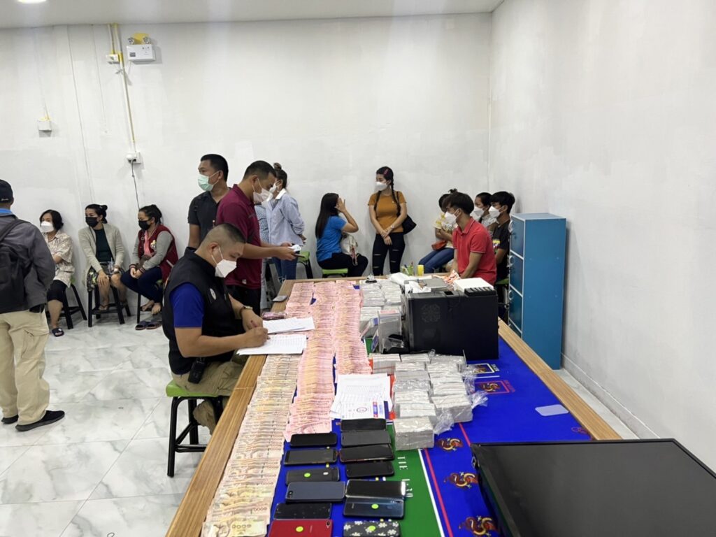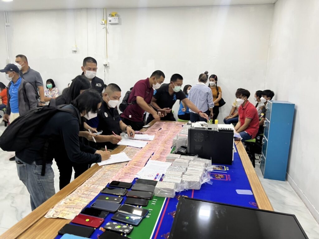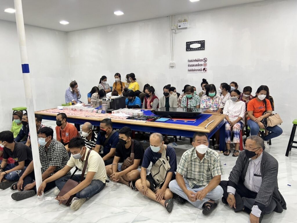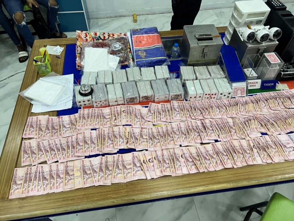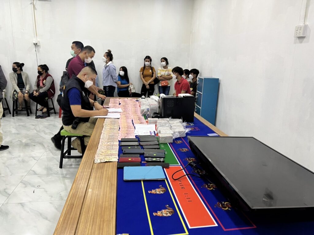 จากการตรวจค้นพบนักพนัน 42 ราย เป็นผู้ชาย 12 คน ผู้หญิง 30 คน กำลังมั่วสุมเล่นไพ่เสือ มังกร กันอยู่ เจ้าหน้าที่จึงสั่งให้ทุกคนหยุดมานั่งรวมกัน พร้อมตรวจยึดของกลาง เงินสด 112,700 บาท,ไพ่ 256 สำรับ,โต๊ะสำหรับเล่นพนันเสือมังกร,เครื่องจ่ายไพ่ กล่องเหล็กใส่เงิน เก้าอี้ 34 ตัว