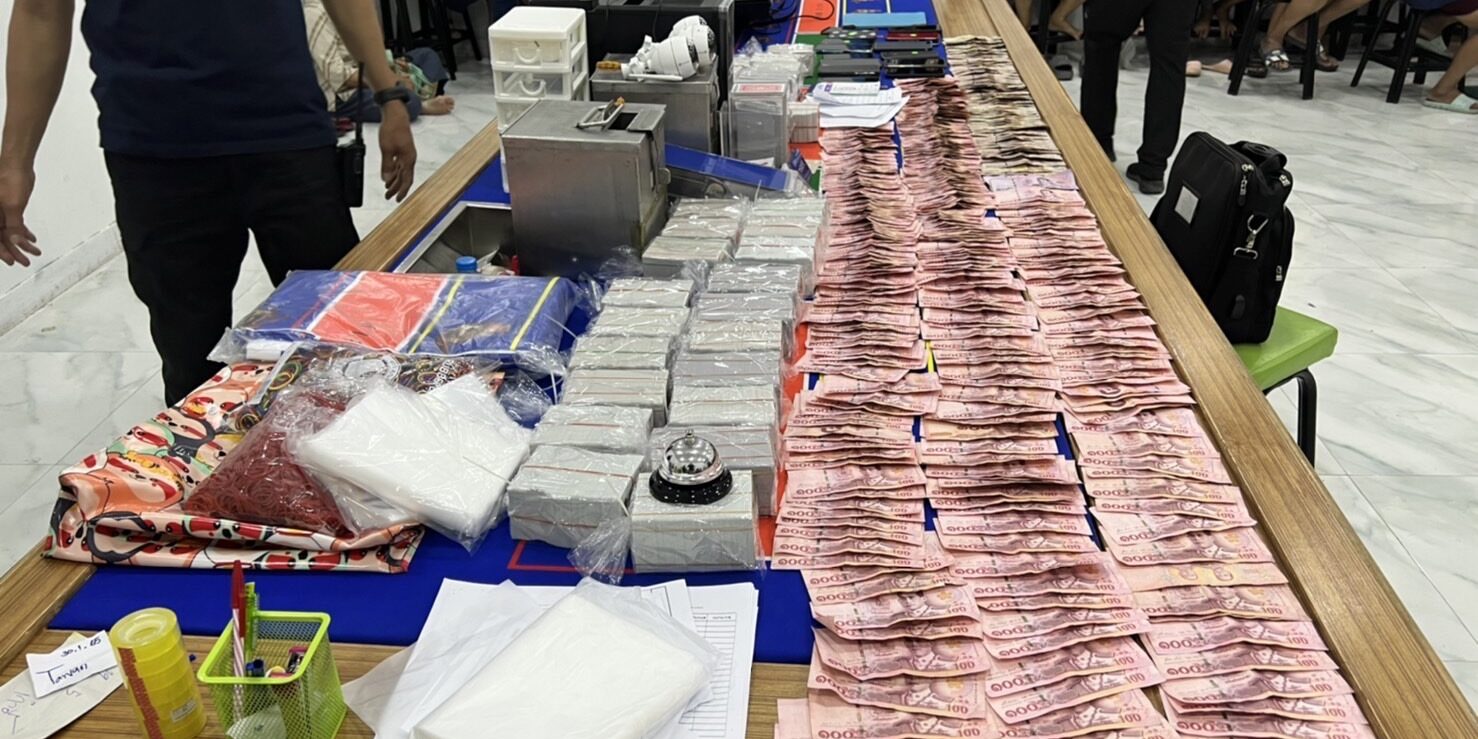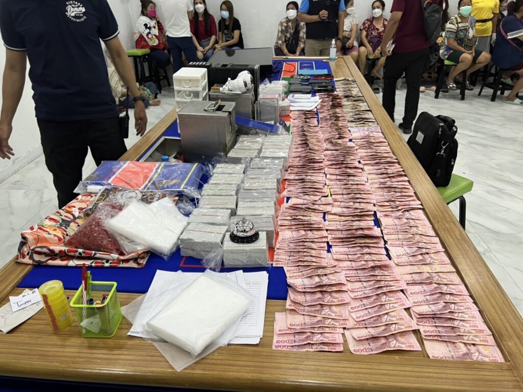 จุดแรก ตำรวจบก.ปปป.ร่วมกับสภ.บางเสาธง นำกำลังปิดล้อม บ้านเลขที่ 148 หมู่ 15 ต.บางเสาธง อ.บางเสาธง จ.สมุทรปราการ พบนักเล่นพนัน 43 คน เป็นผู้ชาย 17 คน ผู้หญิง 23 คน ผู้หญิงต่างด้าว 3 คน กำลังมั่วสุมเล่นการพนันไฮโล,ไฮโลออนไลน์ และตู้สล็อตออนไลน์ กันอย่างหน้าดำคร่ำเครียด เมื่อนักพนันทั้งหมดเห็นเจ้าหน้าที่บุกเข้ามาต่างพยายามวิ่งหลบหนี แต่ไม่สามารถหนีได้ เจ้าหน้าที่จึงได้สั่งให้ทุกคนนั่งอยู่กับที่ พร้อมตรวจยึดของกลาง เงินสดจำนวน 49,300 บาท,จานรองพร้อมฝาเปิด 1 ชุด,ลูกเต๋า จำนวน 3 ลูก,โต๊ะพร้อมแผ่นสำหรับแทงไฮโล 1 ตัว,ไม้เขี่ยเงิน จำนวน 9 ชิ้น,ป้ายกติกาการแทงพนันไฮโล จำนวน 3 แผ่น,บัญชีรายจ่ายประจำวัน 1 เล่ม,บัตรแทนเงินสดสำหรับค่ารถ จำนวน 145 ใบ,กริ่งสัญญาณกดหมดเวลา จำนวน 1 ชุด,เครื่องบันทึกภาพกล้องวงจรปิด cctv จำนวน 1 ชุด,โทรทัศน์ ยี่ห้อ ABL จำนวน 1 เครื่อง,กล่องสำหรับเก็บเงิน จำนวน 2 กล่อง และจอคอมพิวเตอร์แบบทัชสกรีนสำหรับเล่นการพนันออนไลน์