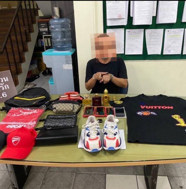 พร้อมของกลางเสื้อยืดคอกลมยี่ห้อ LOUIS VUITTON สีดำ มีลายด้านหน้าและด้านหลัง จำนวน 1 ตัวเสื้อยืดคอกลมยี่ห้อ DUCATI CORSE สีแดง จำนวน 1 ตัว,หมวกแก็ปยี่ห้อ BMW สีเทา จำนวน 1 ใบ,หมวกแก็ปยี่ห้อ DUCATI สีแดง จำนวน 1 ใบ,กระเป๋า คาดอกยี่ห้อ GUCCI สีดำ-น้ำตาล จำนวน 1 ใบ,น้ำหอมยี่ห้อ Mukhallat Amira จำนวน 1 ขวด,หูฟัง AIRPOD MAX สีชมพู จำนวน 1 อัน,หูฟังยี่ห้อ SAMSUNG สีขาว จำนวน 1 คู่,รองเท้าผ้าใบยี่ห้อ PUMA รุ่น BMW สีขาว จำนวน 1 คู่,โทรศัพท์ยี่ห้อ APPLE รุ่น XR สีขาวจำนวน 1 เครื่อง,โทรศัพท์ยี่ห้อ APPLE รุ่น 11 PROMAX สีทองจำนวน 1 เครื่อง,โทรศัพท์ยี่ห้อ APPLE รุ่น 12 MINI สีแดงจำนวน 1 เครื่อง,โทรศัพท์ยี่ห้อ APPLE รุ่น 13 สีดำจำนวน 1 เครื่อง,นาฬิกายี่ห้อ APPLE WATCH series 3 สีดำ จำนวน 1 เรือน,กระเป๋าเป้ยี่ห้อ PUMA สีดำเหลือง จำนวน 1 ใบ,กระเป๋าถือยี่ห้อ MONT BLANG สีดำ จำนวน 1 ใบ,กระเป๋าถือยี่ห้อ VERSACE สีดำ จำนวน 1 ใบ,สร้อยคอทองคำ 8K น้ำหนัก 1 สลึง จำนวน 1 เส้น,สร้อยคอเงินชุบทองพร้อมจี้ จำนวน 2 เส้น,น้ำหอมยี่ห้อ VERSACE จำนวน 1 ขวด,น้ำหอม ยี่ห้อ Wisai Dhahab จำนวน 1 ขวด และเสื้อแขนยาวสีฟ้า จำนวน 1 ตัว ที่ผู้ต้องหาสวมใส่ขณะก่อเหตุรวมทรัพย์สินทั้งหมด มูลค่ารวม ประมาณ 400,000 บาท